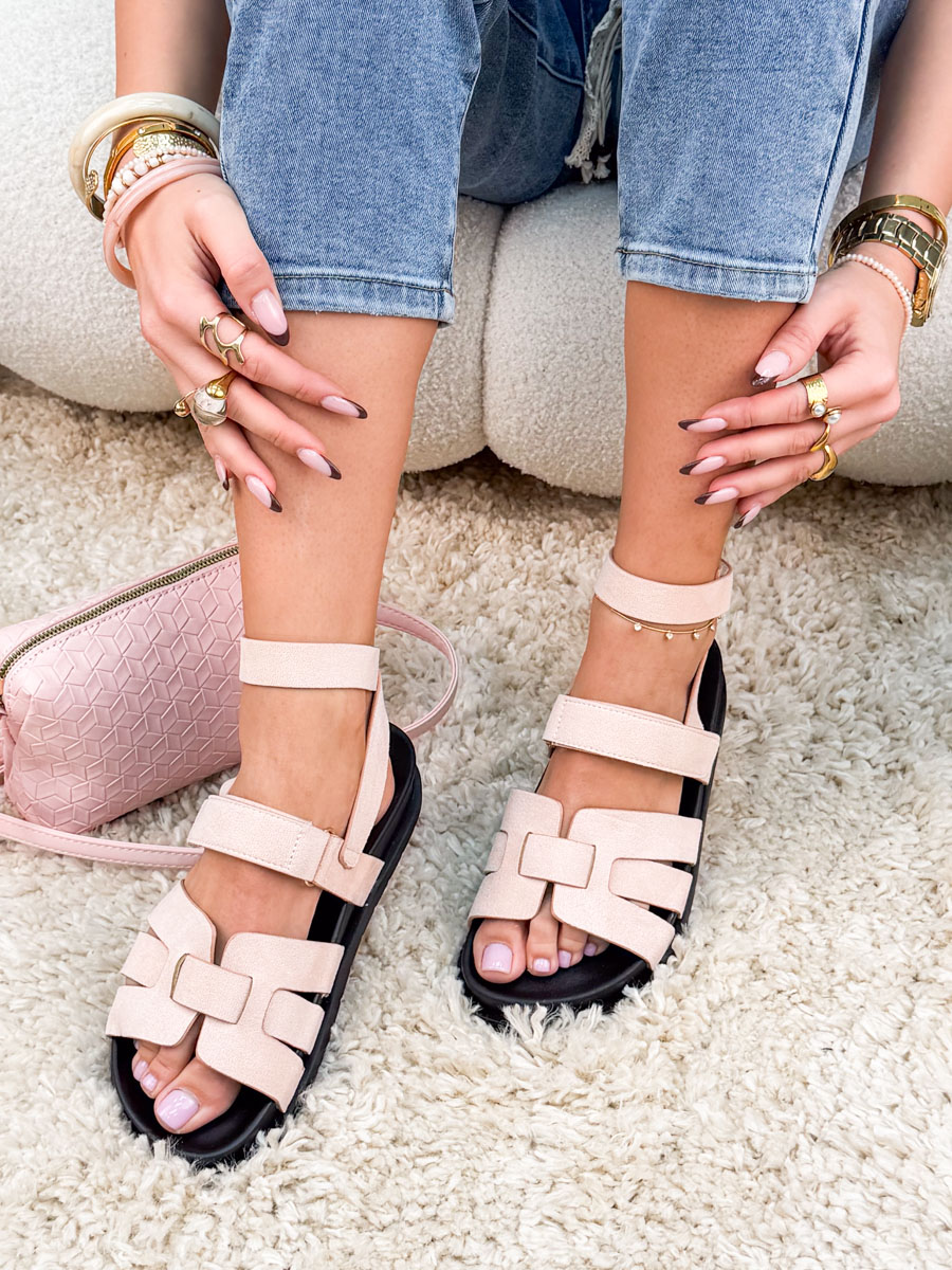 Rzymianki na rzep czarna podeszwa Pudrowe – Midnight Walk to wygodna i stylowa propozycja na codzienne, letnie aktywności. Model wyróżnia się regulowanymi paskami na rzep, które umożliwiają szybkie i precyzyjne dopasowanie sandałów do stopy, zwiększając komfort noszenia. Cholewka wykonana z materiału o zamszowej strukturze w delikatnym, pudrowym odcieniu prezentuje się lekko i kobieco. Kontrastująca, czarna podeszwa nadaje całości nowoczesnego charakteru i zapewnia stabilność podczas chodzenia. Płaska, wygodna konstrukcja sprawdzi się w codziennym użytkowaniu, również podczas dłuższych spacerów. To idealny wybór dla osób ceniących funkcjonalność, wygodę i modny, a jednocześnie uniwersalny styl.