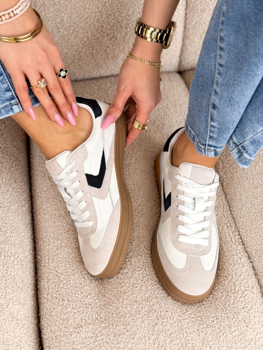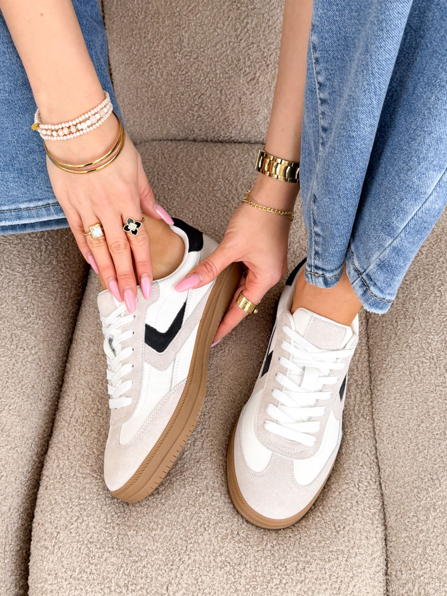 Skórzane sneakersy sportowe Białe – Sportelle to klasyczna i uniwersalna propozycja dla kobiet ceniących wygodę oraz ponadczasowy styl. Model wykonany z wysokiej jakości materiałów wyróżnia się sportowym fasonem oraz subtelnymi kontrastowymi wstawkami, które dodają mu nowoczesnego charakteru. Lekka konstrukcja oraz wygodna podeszwa zapewniają komfort noszenia przez cały dzień, a klasyczne sznurowanie umożliwia idealne dopasowanie do stopy. Sneakersy Sportelle doskonale sprawdzą się zarówno w codziennych stylizacjach z jeansami, jak i w bardziej casualowych zestawach z sukienką czy dresowym kompletem, tworząc modny i swobodny look.