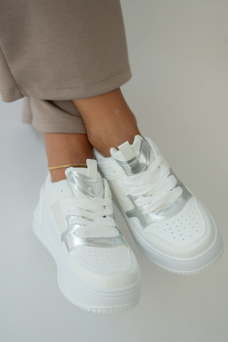 Sneakersy damskie na platformie z metalicznymi wstawkami Białe – Olirene