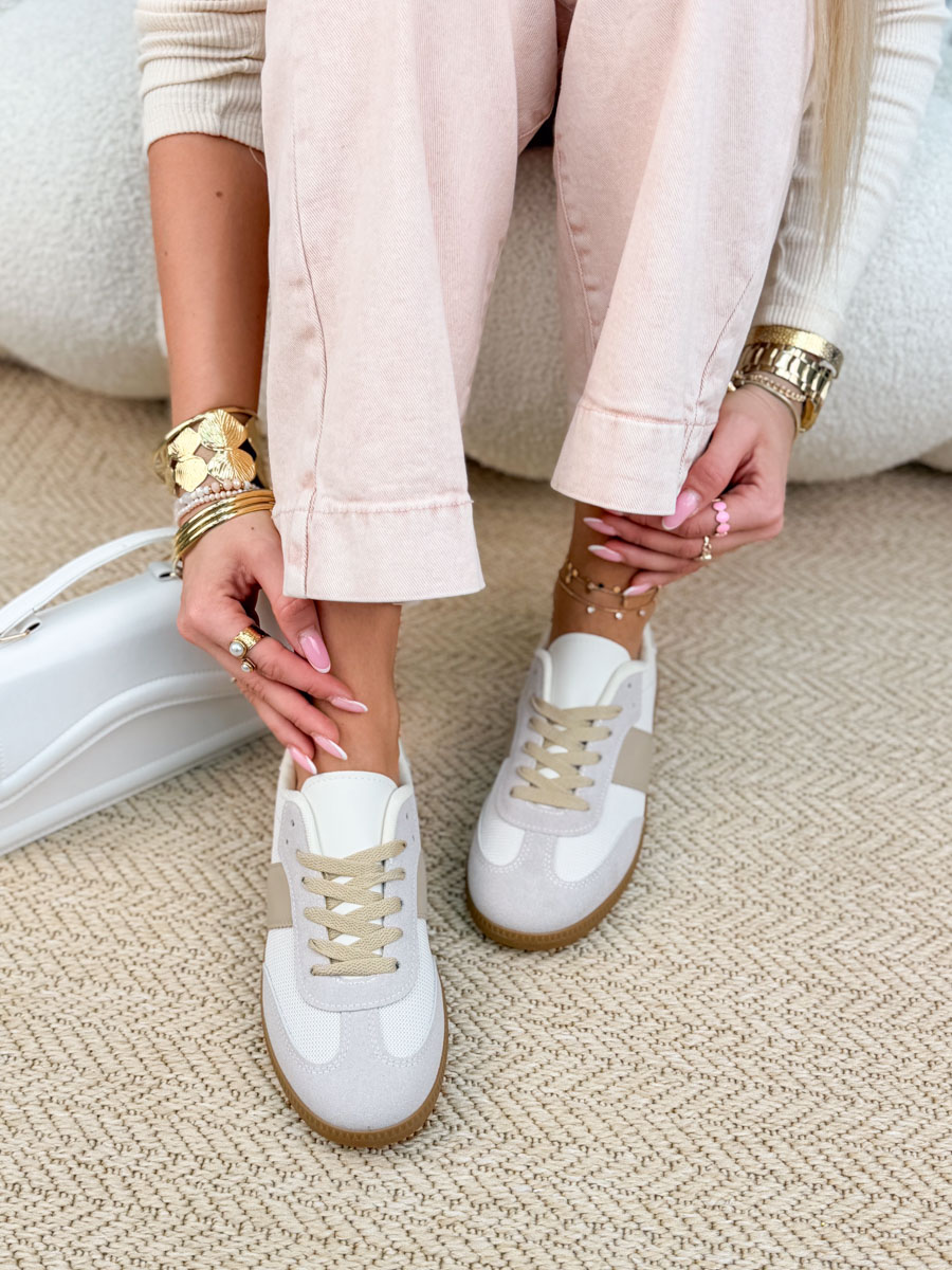Sneakersy damskie Vintara w beżowym odcieniu to stylowa propozycja inspirowana klasycznym, vintage’owym designem. Stonowana kolorystyka nadaje im eleganckiego, minimalistycznego charakteru, który łatwo dopasować do wielu stylizacji. Komfortowa konstrukcja oraz miękka podeszwa zapewniają wygodę na co dzień, a klasyczne sznurowanie pozwala idealnie dopasować but do stopy. To uniwersalny model, który świetnie sprawdzi się zarówno w casualowych, jak i bardziej dopracowanych zestawach.