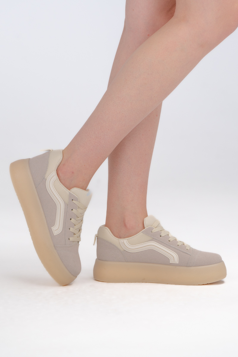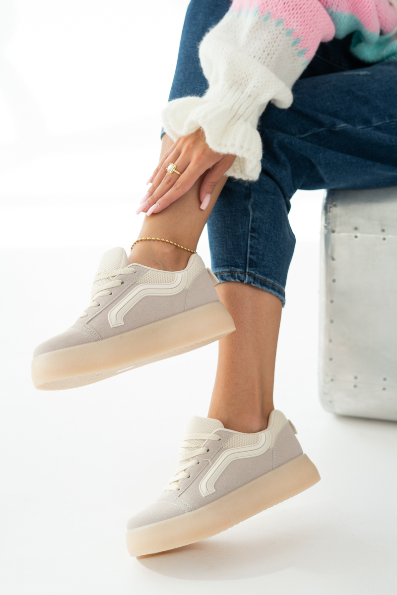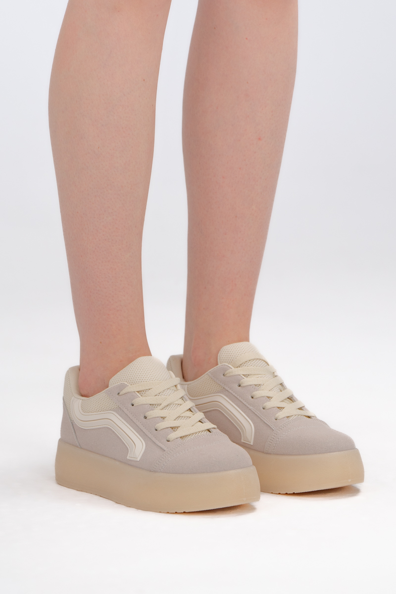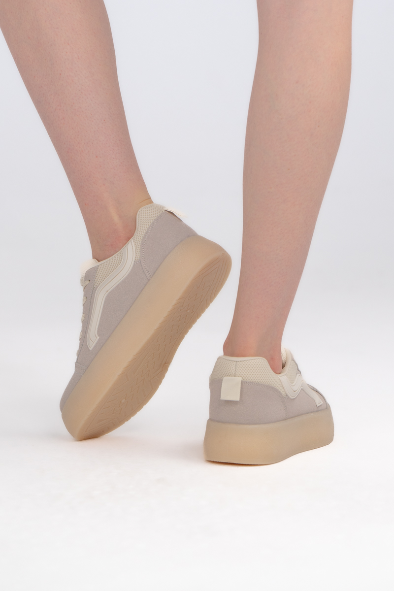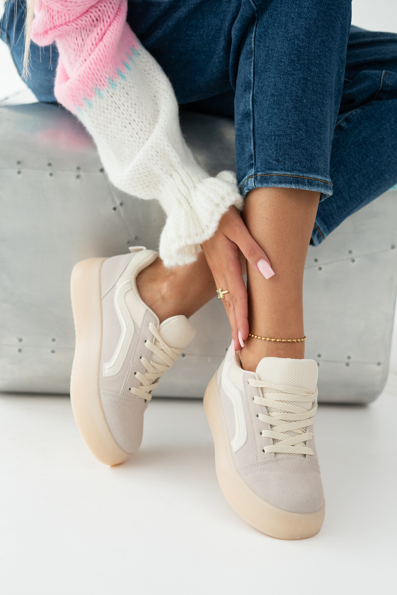 Sneakersy na platformie w stylu skate Beżowe – Favora