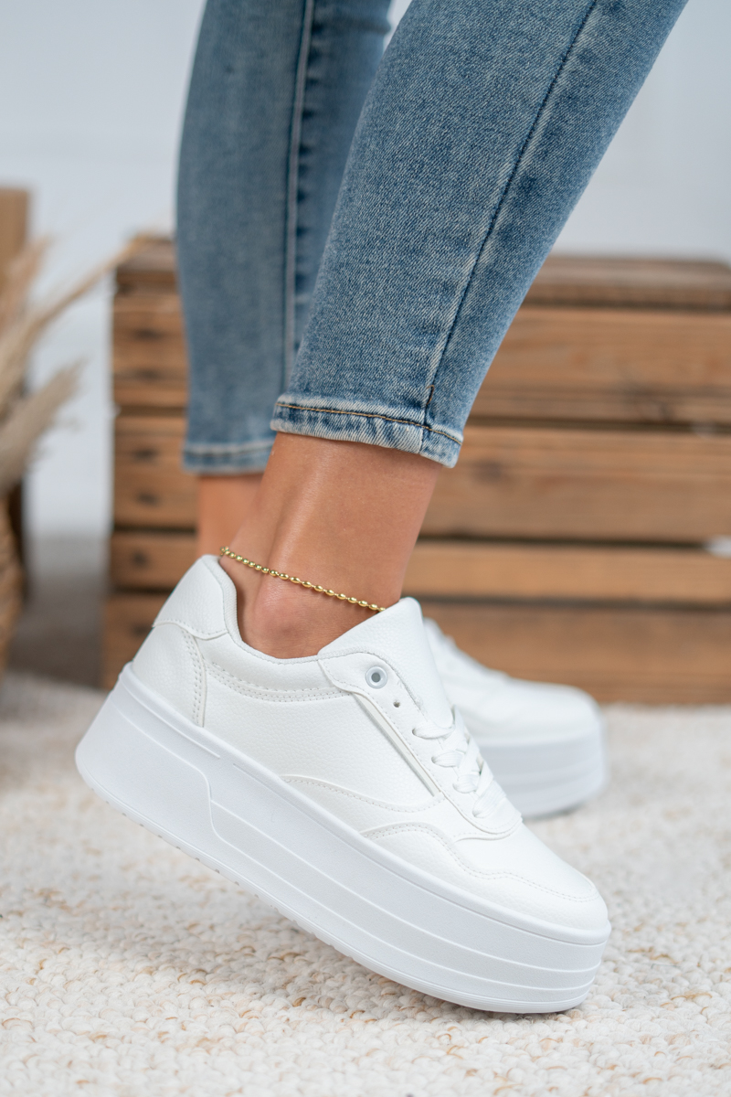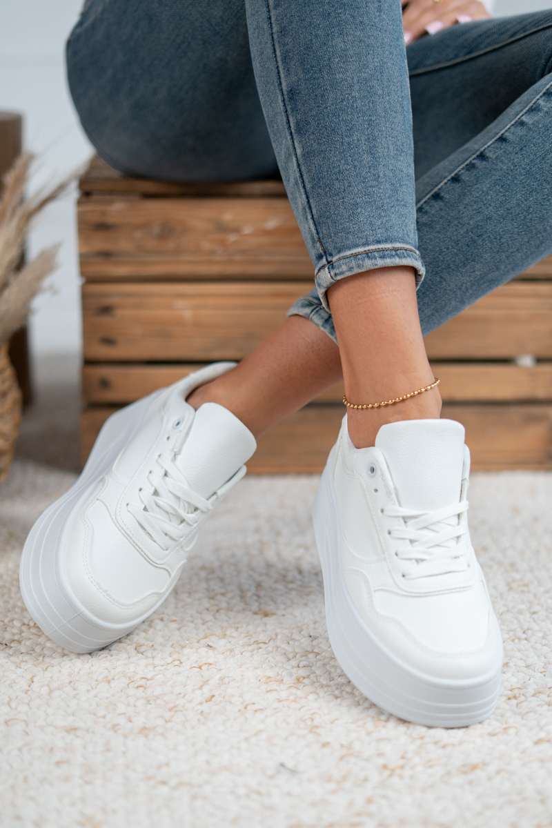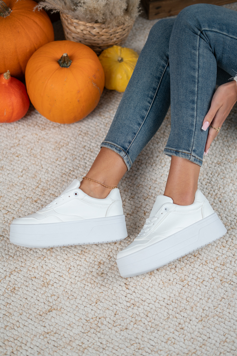 Sneakersy Rosavine w kolorze białym to modna propozycja dla kobiet ceniących wygodę i nowoczesny styl. Osadzone na wysokiej platformie, optycznie wydłużają nogi, a jednocześnie gwarantują komfort noszenia każdego dnia. Klasyczna, monochromatyczna kolorystyka sprawia, że doskonale komponują się z wieloma stylizacjami – od casualowych po bardziej sportowe. To uniwersalne obuwie, które doda charakteru każdemu outfitowi.