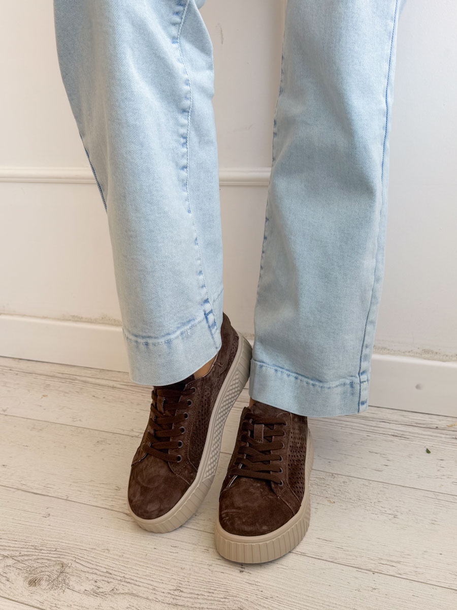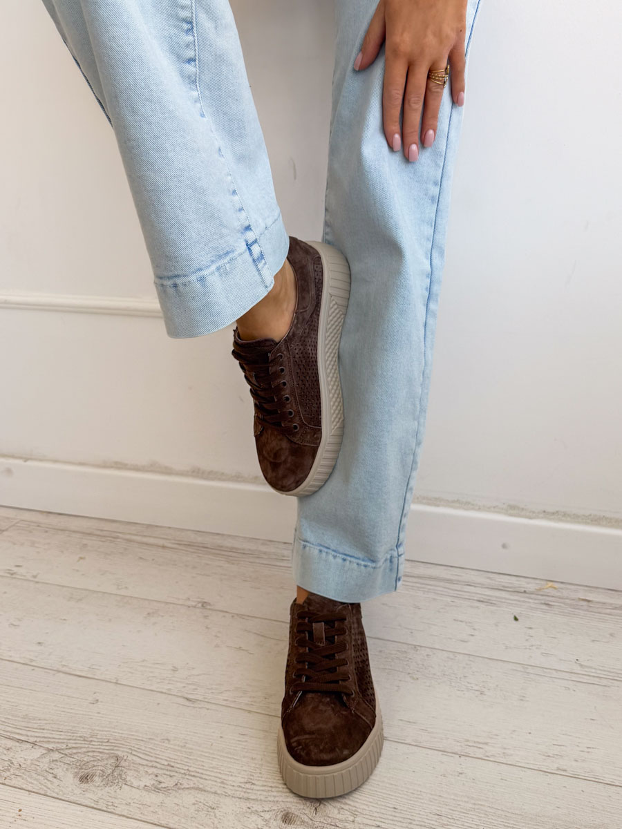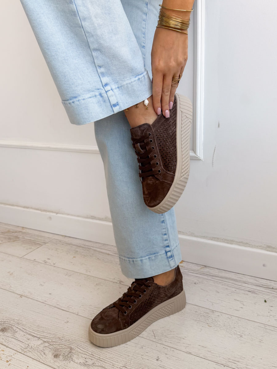 Sneakersy skórzane ażurowe Czekoladowy – Perfora to stylowe i wygodne obuwie, które doskonale sprawdzi się w codziennych stylizacjach. Model wykonany z wysokiej jakości skóry w modnym, czekoladowym odcieniu wyróżnia się ażurową strukturą, która nie tylko nadaje butom nowoczesnego charakteru, ale również zapewnia lepszą przewiewność. Klasyczne sznurowanie pozwala idealnie dopasować obuwie do stopy, a solidna, jasna podeszwa gwarantuje komfort podczas chodzenia. Sneakersy Perfora świetnie komponują się zarówno z jeansami, jak i sukienkami czy casualowymi zestawami, tworząc modny i wygodny look na co dzień.