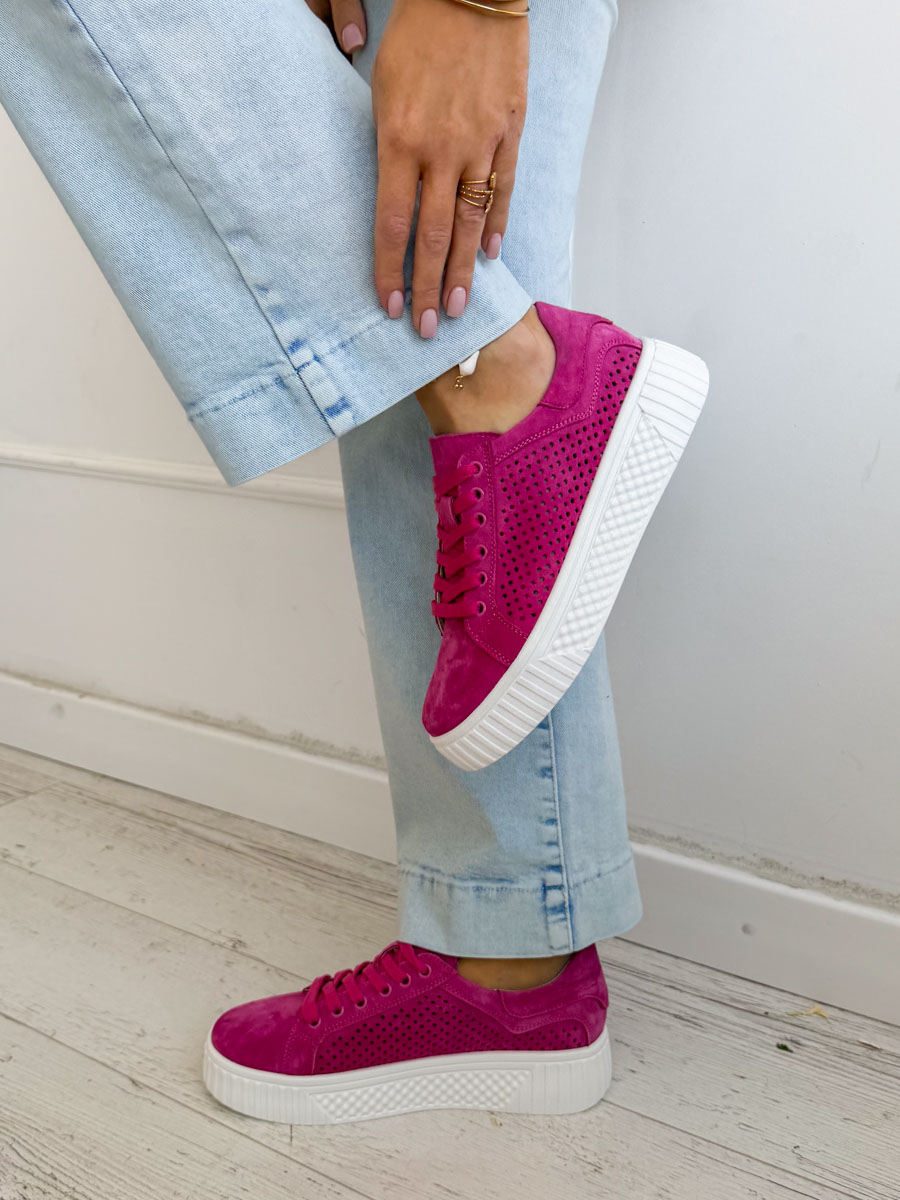 Sneakersy skórzane ażurowe Fuksjowy – Perfora