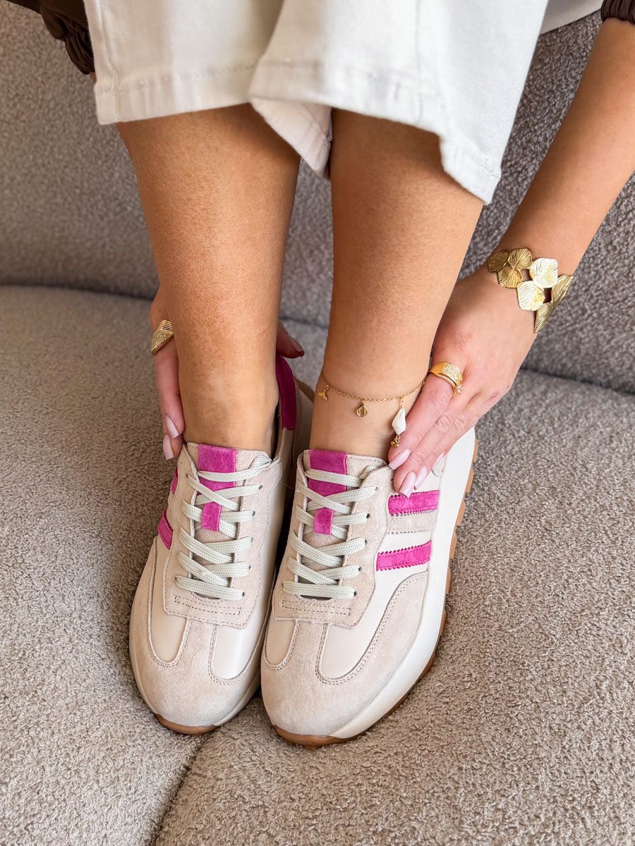 Sneakersy skórzane na traperowej podeszwie Różowy – Trekkera