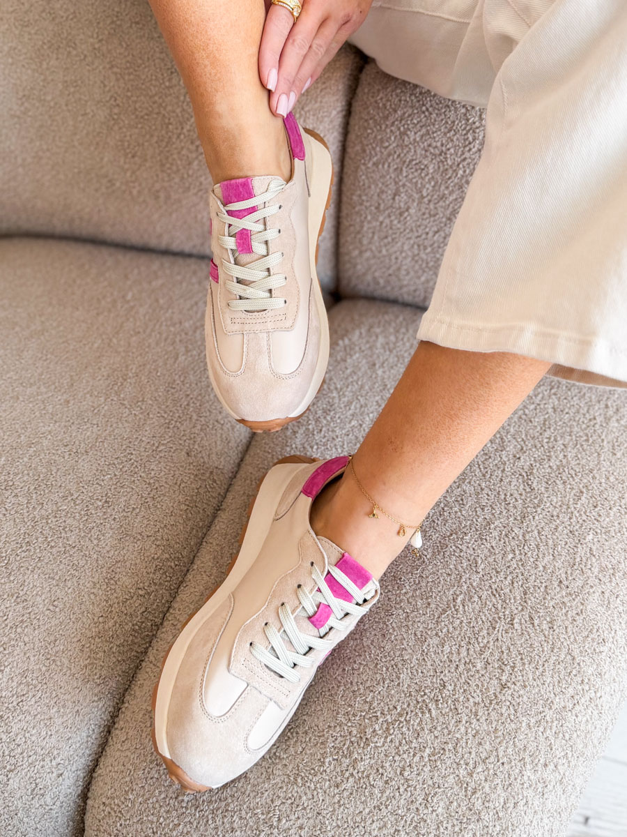 Sneakersy Trekkera w różowym kolorze to stylowe połączenie miejskiej wygody i modnego designu. Wykonane z wysokiej jakości skóry, zapewniają trwałość oraz komfort noszenia na co dzień. Charakterystyczna traperowa podeszwa dodaje im wyrazistego charakteru, a jednocześnie gwarantuje dobrą przyczepność i stabilność podczas chodzenia. Jasna cholewka została uzupełniona kontrastowymi, różowymi paskami i detalami, które podkreślają sportowy styl butów. Miękka wyściółka oraz wygodne sznurowanie pozwalają idealnie dopasować sneakersy do stopy. To doskonały wybór dla osób ceniących wygodę, funkcjonalność i modny wygląd w codziennych stylizacjach.