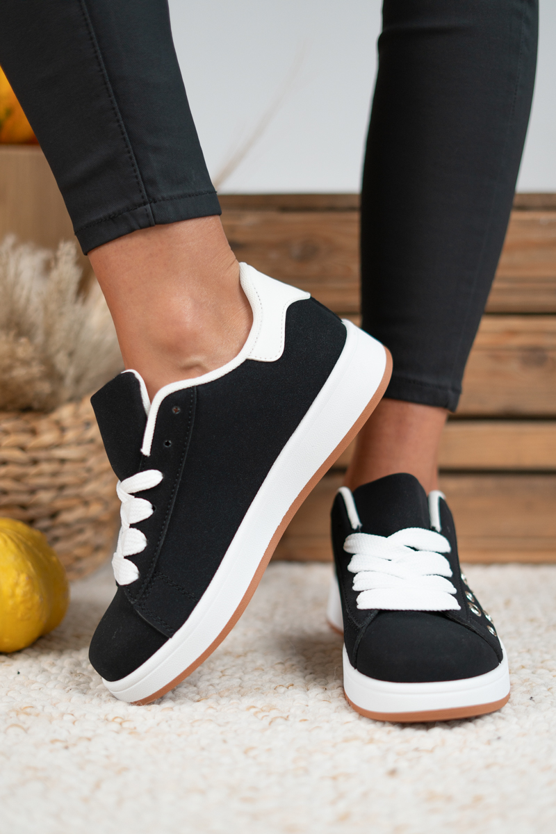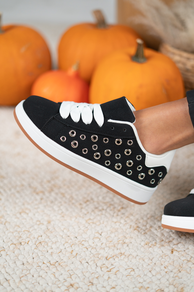 Sneakersy z ozdobnymi aplikacjami Czarny – Valesira