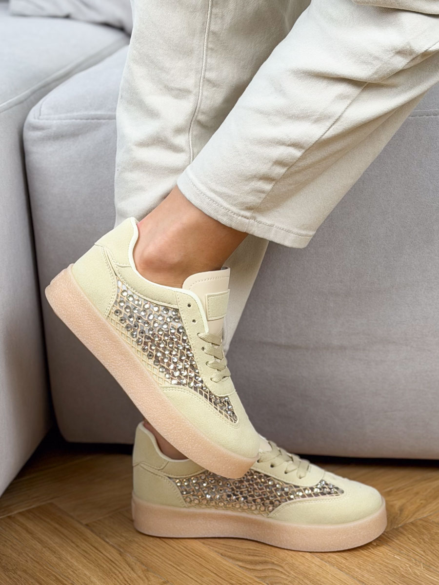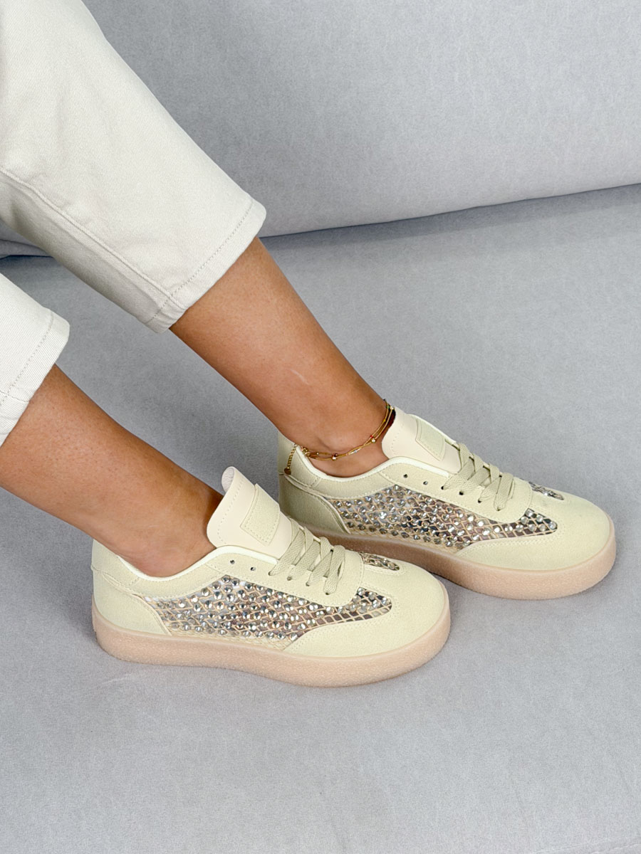Sneakersy z siateczką i cyrkoniami Bananowe – Sparkle Move