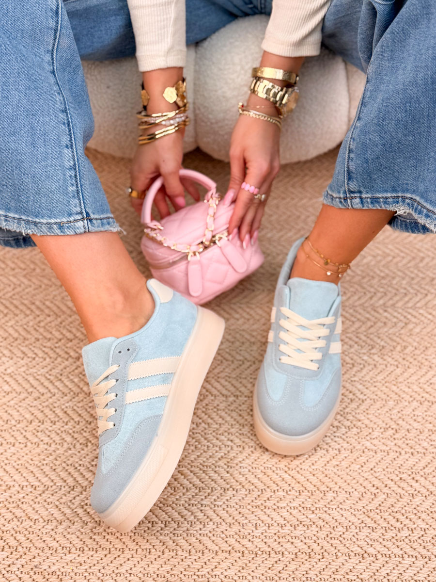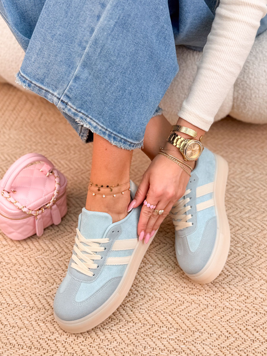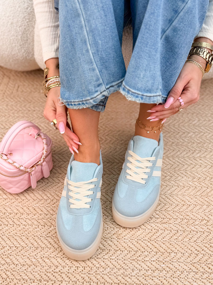 Błękitne sneakersy Suwhite to idealne połączenie wygody i modnego, świeżego stylu. Wykonane z miękkiego zamszu, prezentują się lekko i subtelnie, a jednocześnie dodają charakteru codziennym stylizacjom. Jasna, biała podeszwa nie tylko świetnie kontrastuje z cholewką, ale też zapewnia komfort podczas chodzenia i stabilność na co dzień. Klasyczne sznurowanie pozwala dobrze dopasować but do stopy, a uniwersalny fason sprawdzi się zarówno do jeansów, jak i sukienek. To model, który łączy casualowy luz z kobiecą estetyką.