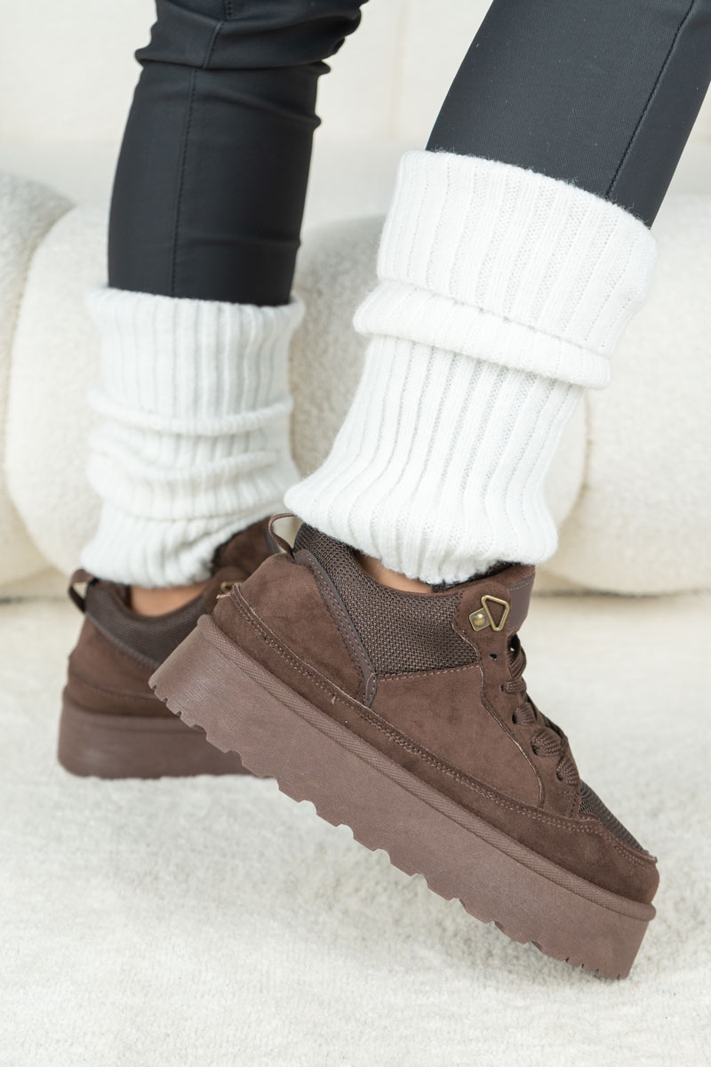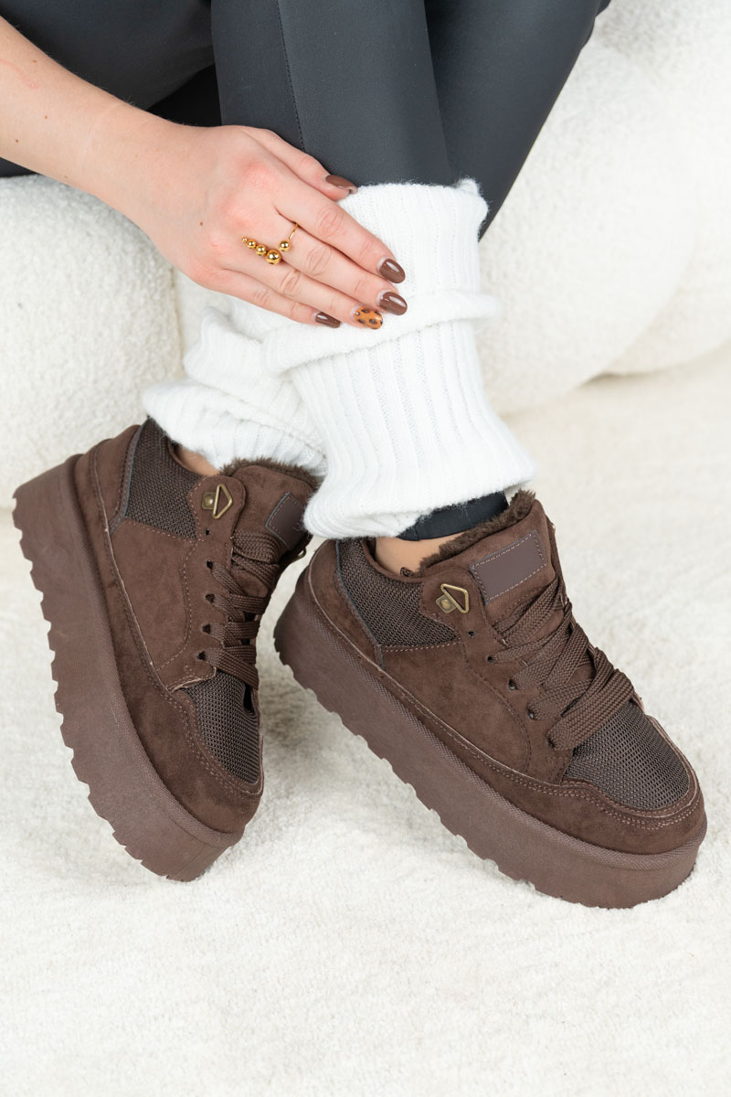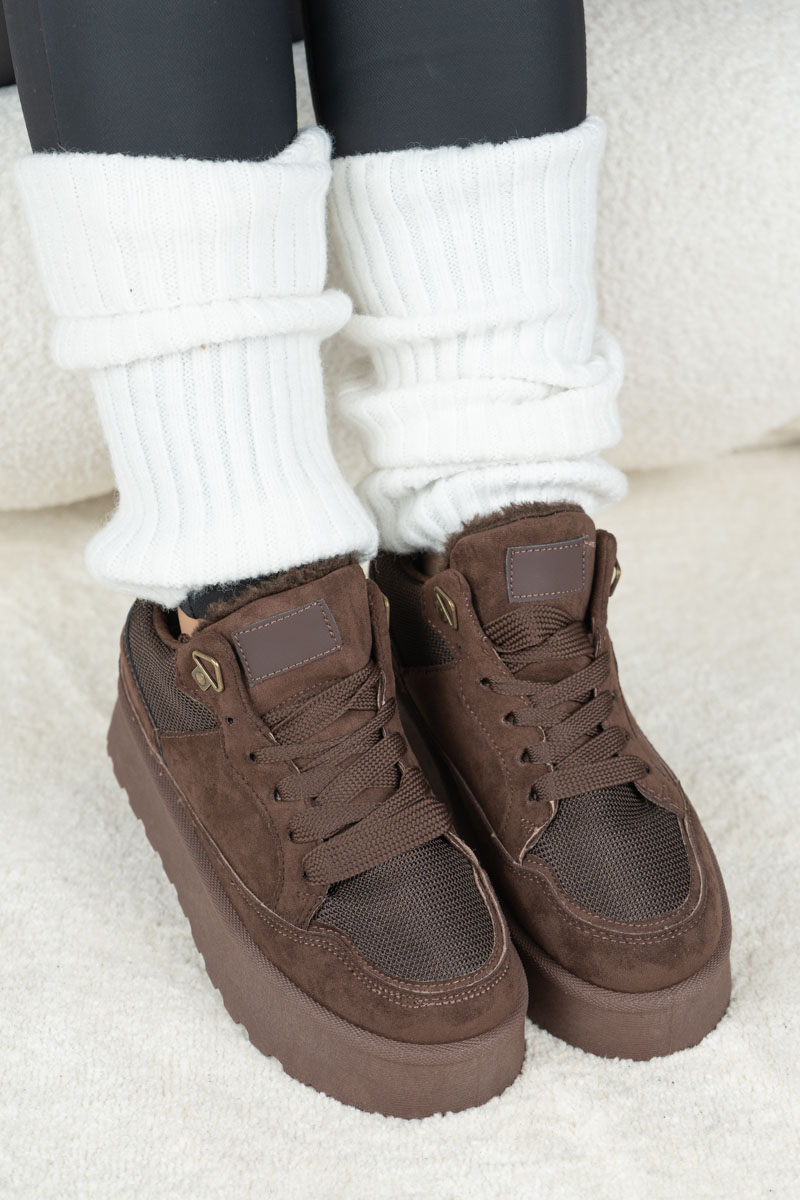 Sneakersy zimowe na grubej podeszwie Czekoladowe – Tarynne