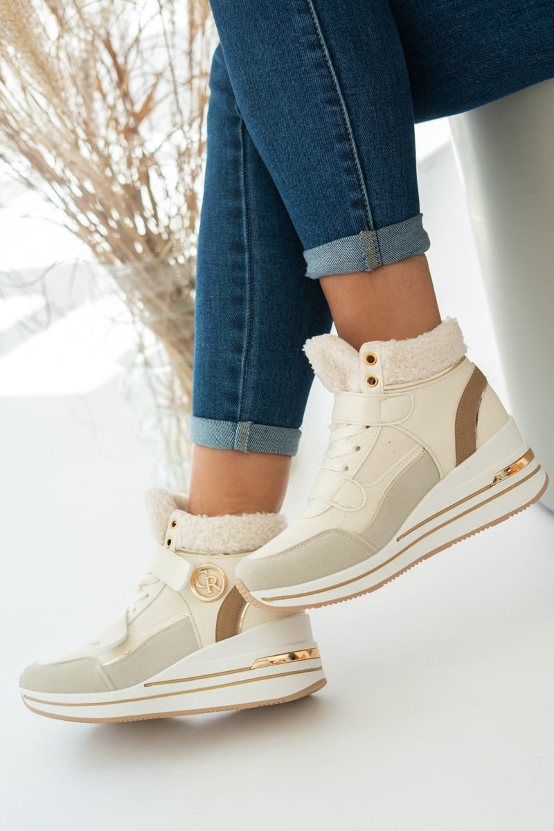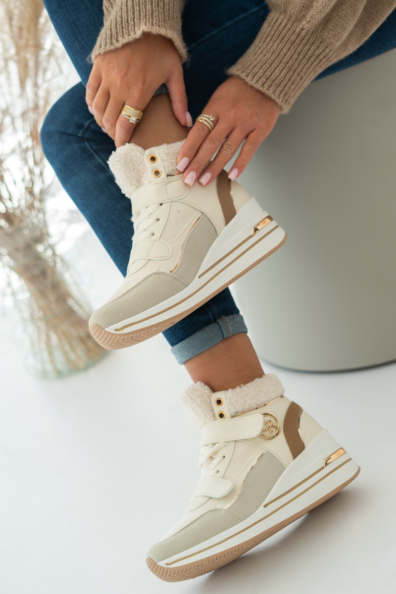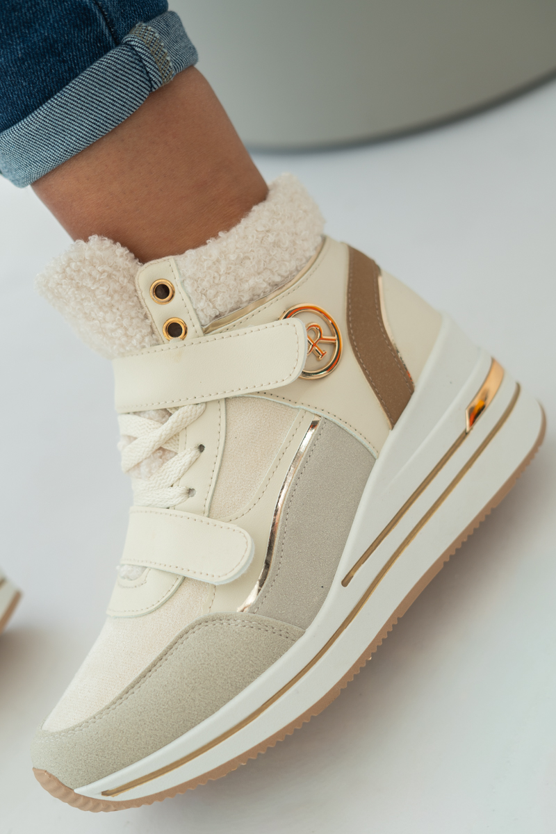 Sneakersy na rzepy z futrem wewnątrz Beżowe – Zenyra