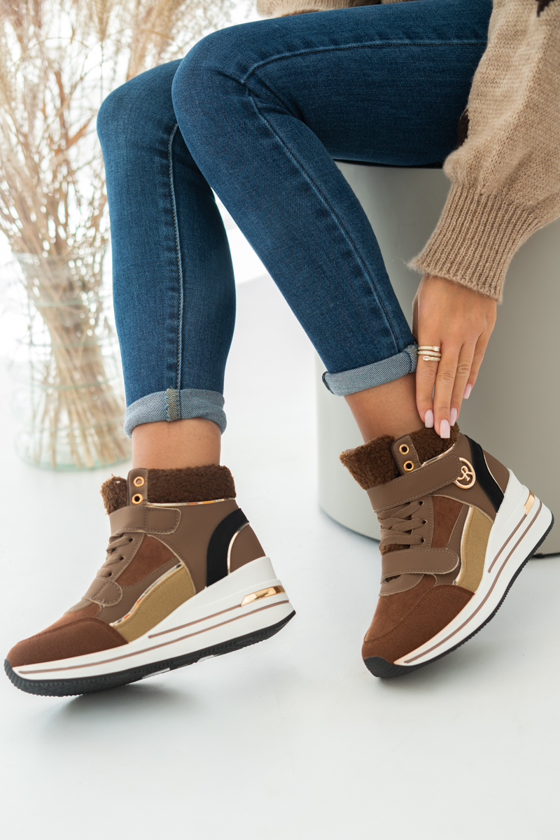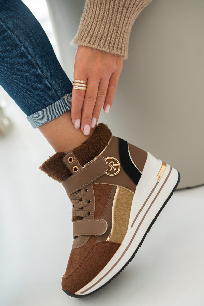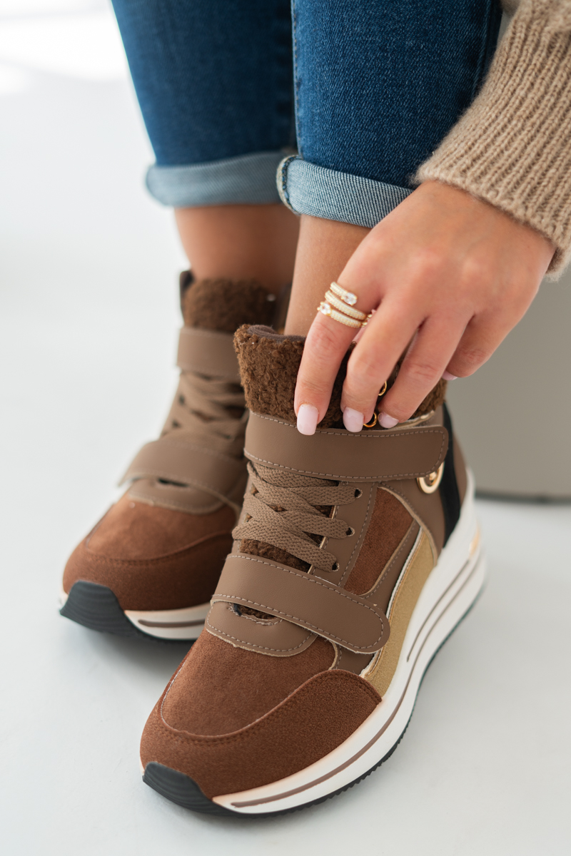 Sneakersy na rzepy z futrem wewnątrz Czekoladowe – Zenyra
