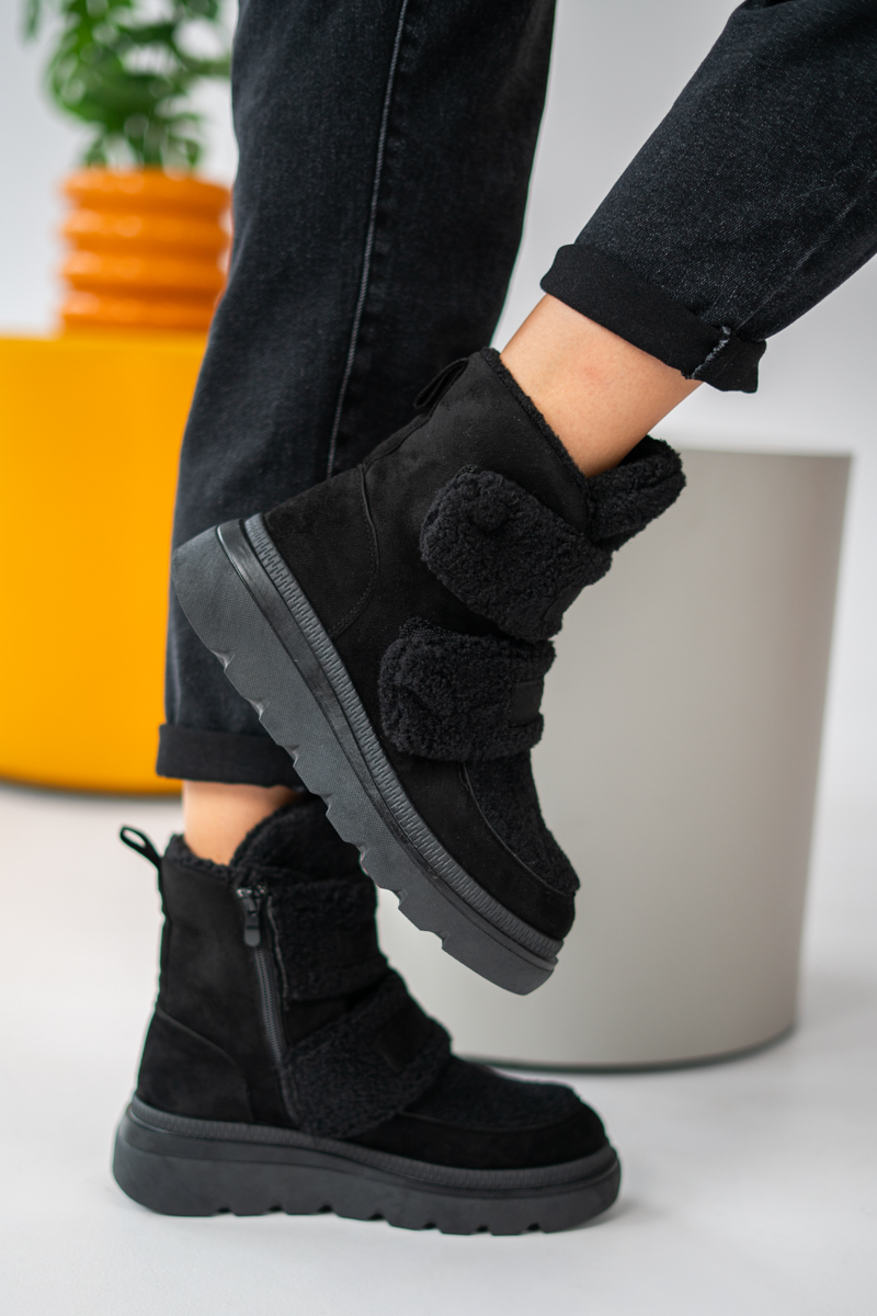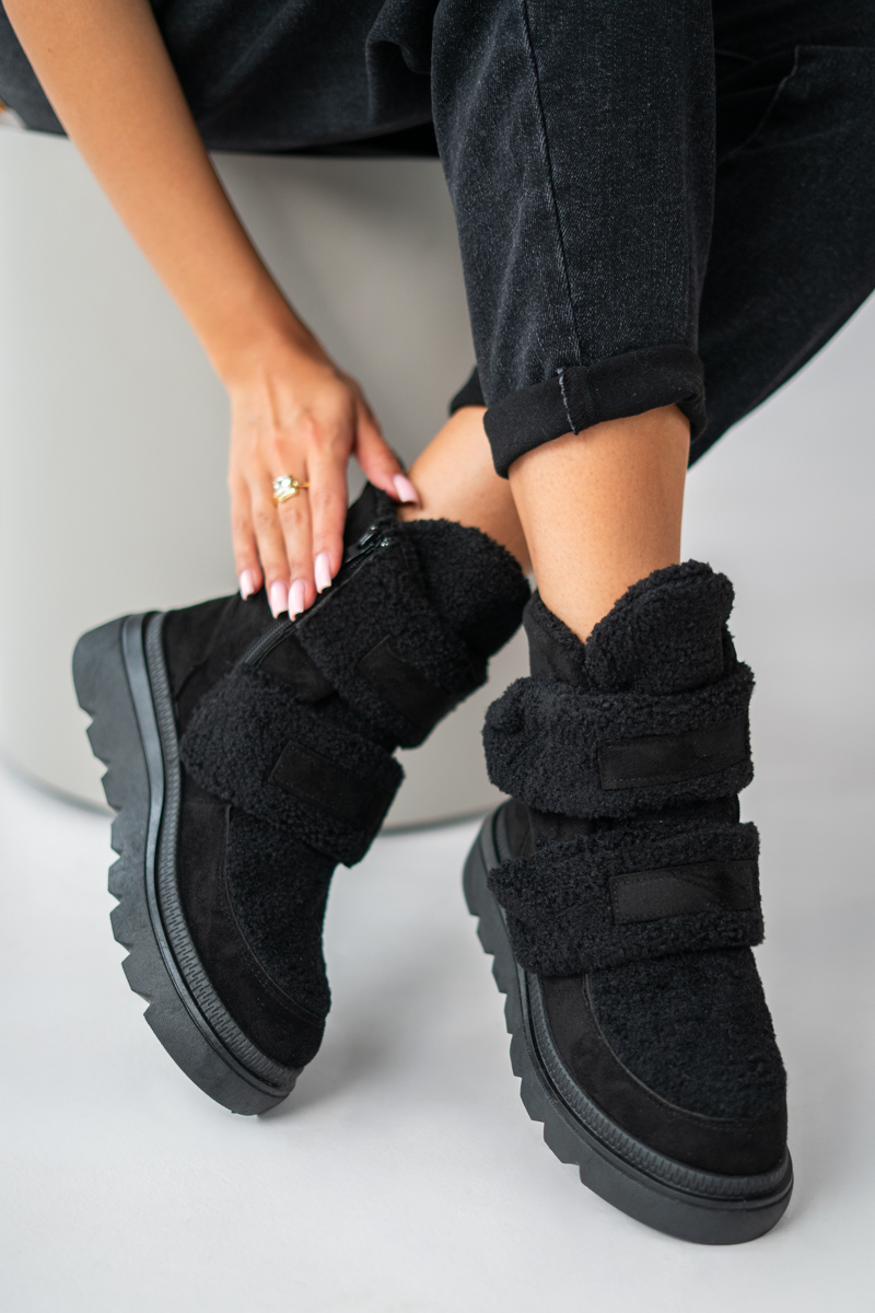 Ocieplane sneakersy damskie na rzepy Czarne – Estoriah