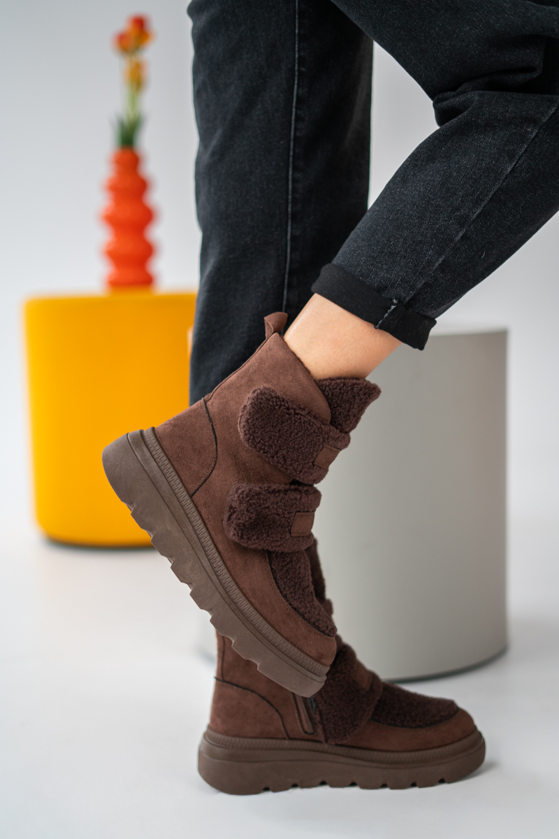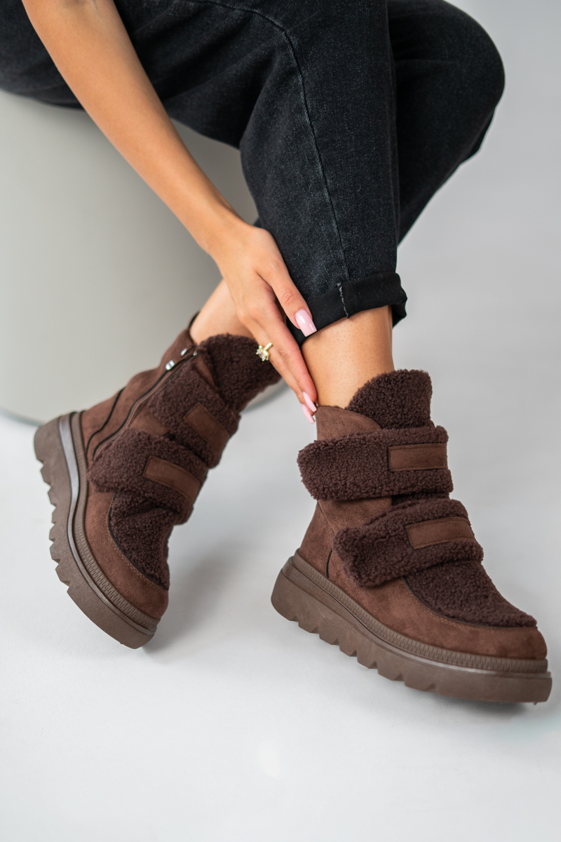 Ocieplane sneakersy damskie na rzepy Czekoladowe – Estoriah