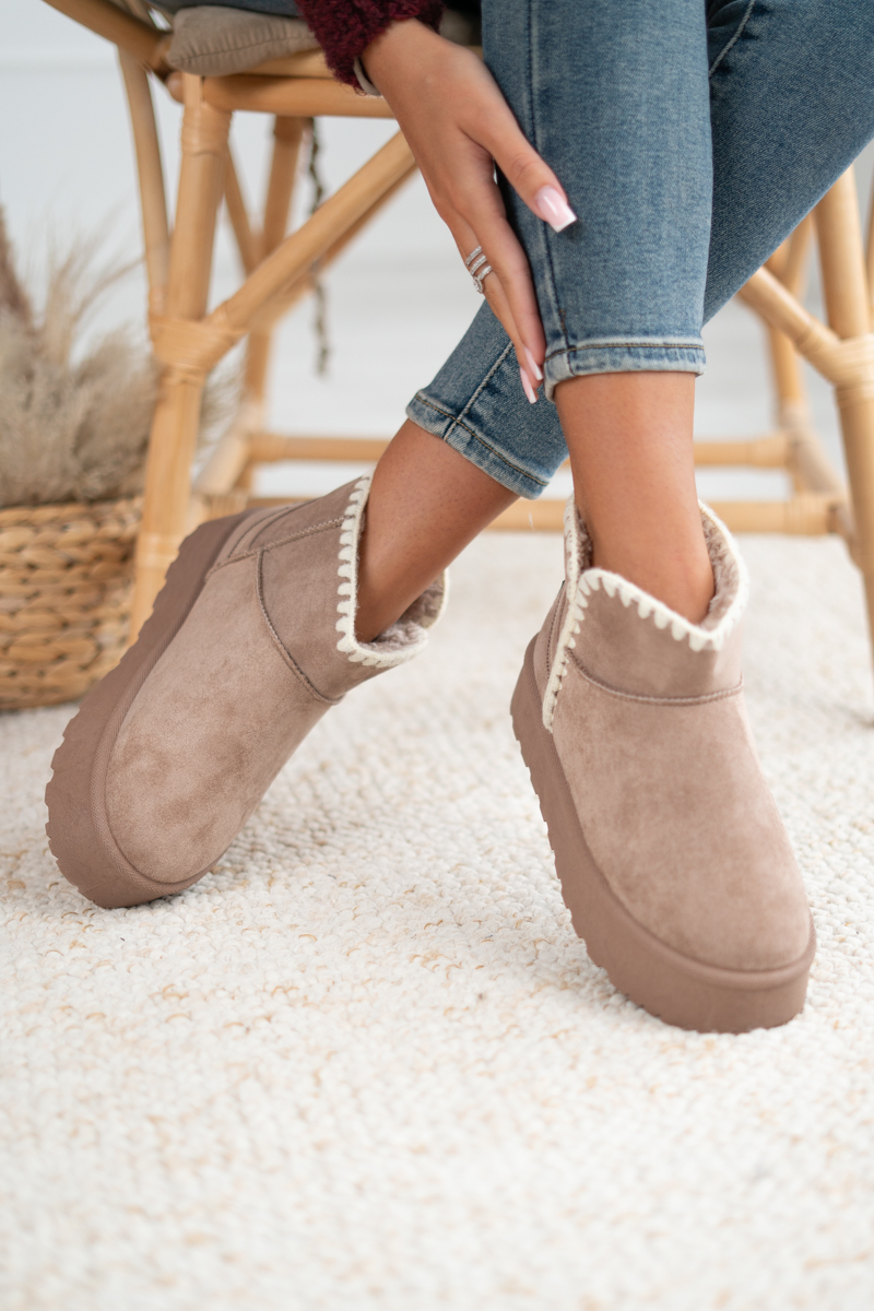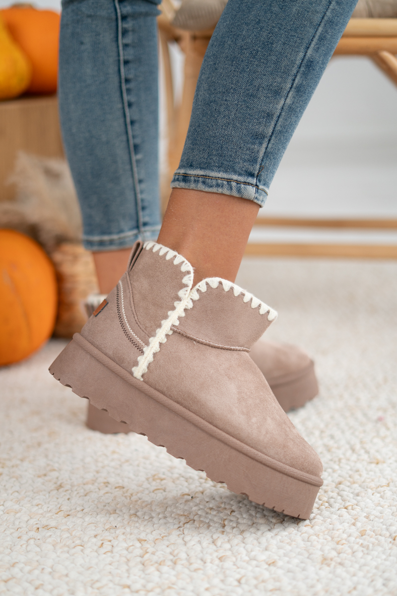 Śniegowce Melioraen w odcieniu fango to połączenie stylu, wygody i ciepła – idealne na zimowe dni. Wykonane z miękkiego materiału o zamszowym wykończeniu, zapewniają przyjemny komfort noszenia i skuteczną ochronę przed chłodem. Wnętrze zostało ocieplone, dzięki czemu buty doskonale sprawdzą się w codziennych, zimowych stylizacjach. Gruba, antypoślizgowa podeszwa gwarantuje stabilność, a ozdobne obszycie w jasnym kolorze dodaje im uroku i modnego charakteru. Świetnie pasują do jeansów, legginsów i długich swetrów, tworząc ciepły i stylowy look.