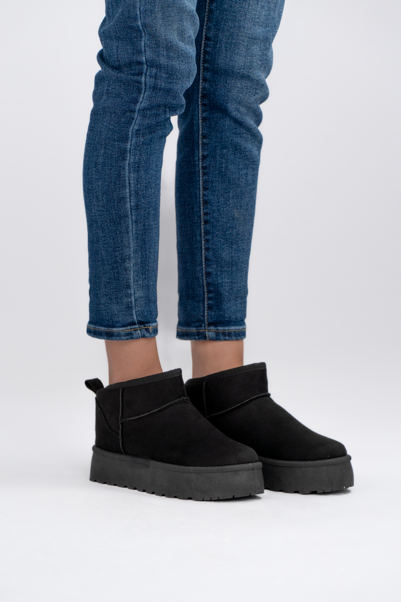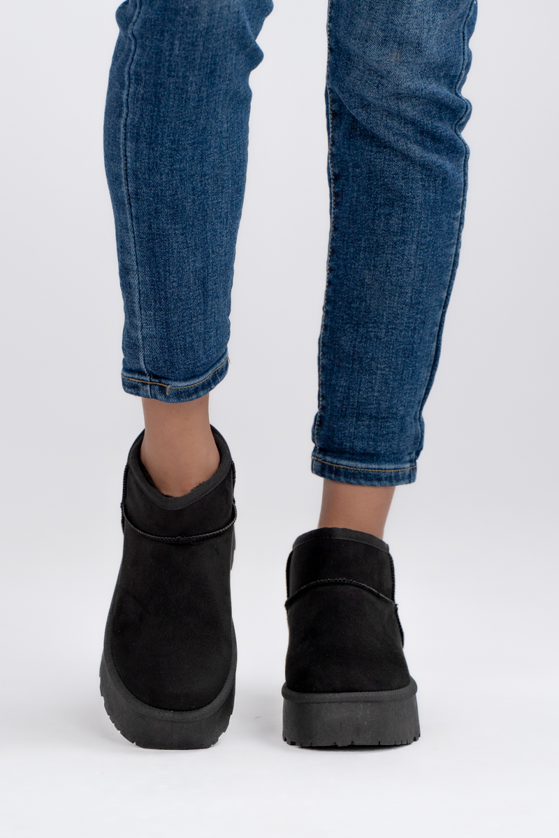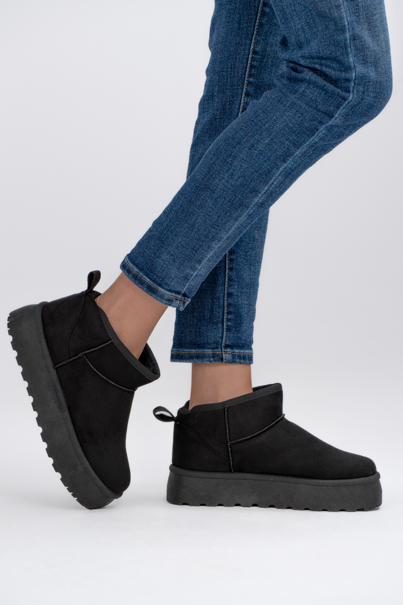 Śniegowce z niską cholewką na płaskiej platformie Czarne – Vionette