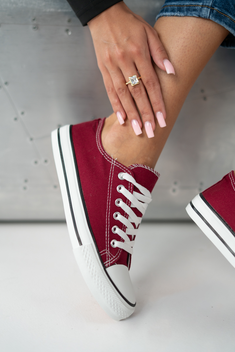 Trampki casualowe damskie Casoria w kolorze bordowym to klasyk w nowoczesnym wydaniu. Wykonane z lekkiej i przewiewnej tkaniny, zapewniają wygodę na co dzień, a gumowa, elastyczna podeszwa gwarantuje komfort i stabilność podczas chodzenia. Bordowa cholewka z kontrastującymi białymi sznurówkami i podeszwą nadaje im sportowego, a jednocześnie stylowego charakteru. Idealne do jeansów, szortów czy sukienek – sprawdzą się zarówno w codziennych, miejskich stylizacjach, jak i na weekendowe wyjazdy. To ponadczasowy model, który zawsze warto mieć w swojej garderobie.