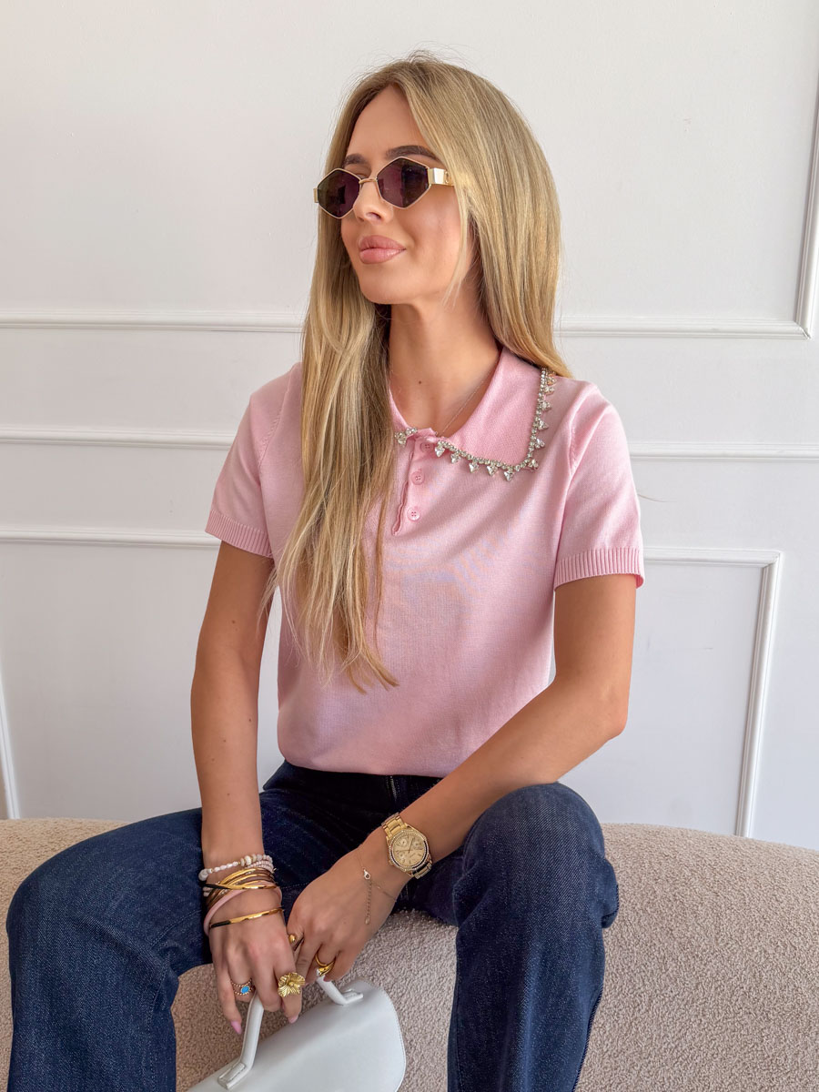 Bluzka dzianinowa z cyrkoniami Różowy – Rhinella
