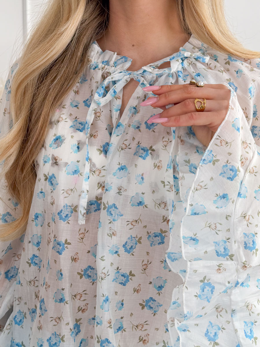 Bluzka z motywem kwiatowym Błękitna – Florique