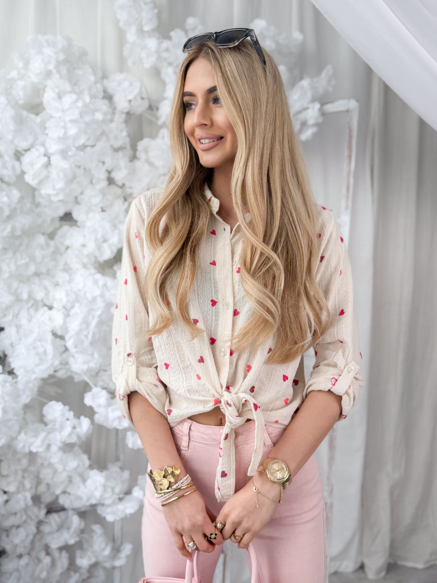 Koszula z haftowaniem i serduszkami Różowa – Embroheart