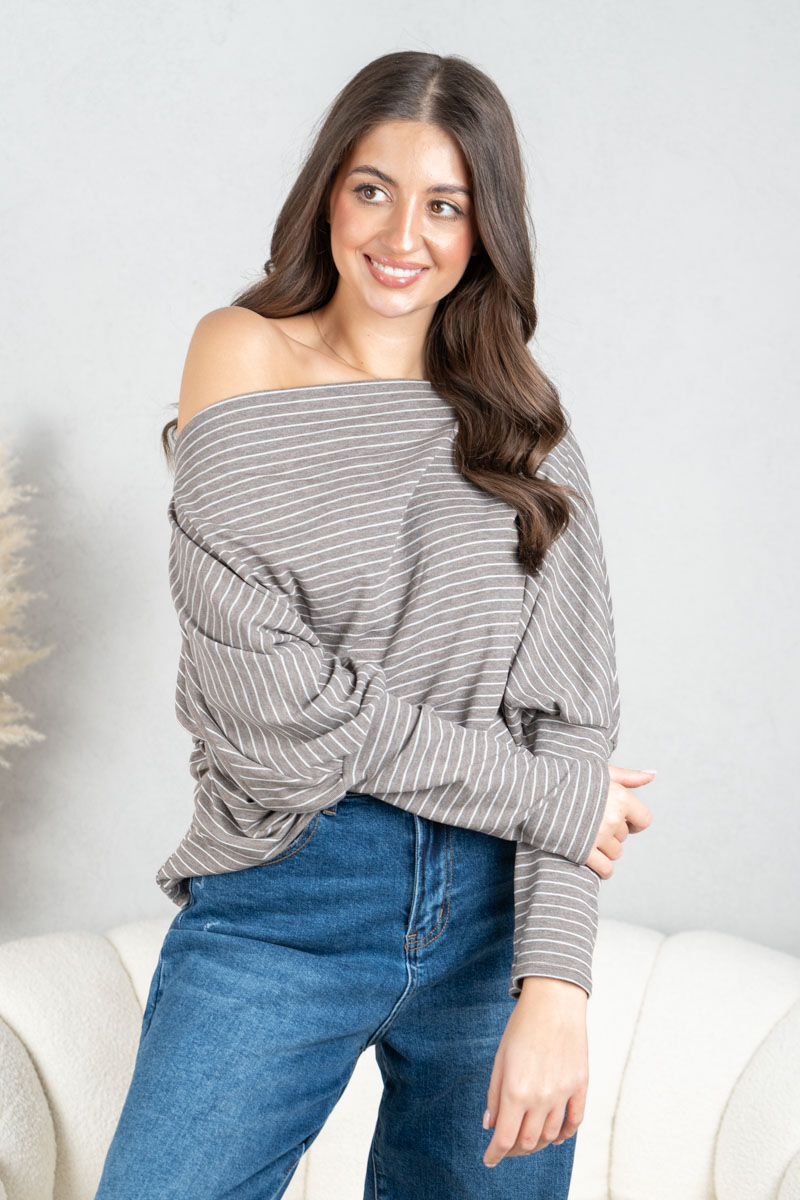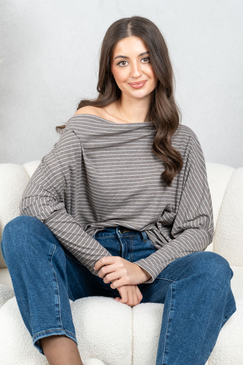 Bluzka Lyvarra w paski z dekoltem typu woda w kolorze fango to stylowa propozycja, która łączy klasykę z nowoczesnym akcentem. Dekolt woda miękko układa się na sylwetce, nadając całości subtelnej elegancji i kobiecego charakteru. Wykonana z lekkiego, elastycznego materiału, gwarantuje wygodę oraz idealne dopasowanie do figury. Neutralny, ziemisty odcień fango sprawia, że bluzka jest uniwersalna i łatwo komponuje się z różnymi elementami garderoby – od jeansów po spódnice. To ponadczasowy model, który doskonale sprawdzi się zarówno w codziennych, jak i bardziej eleganckich stylizacjach.