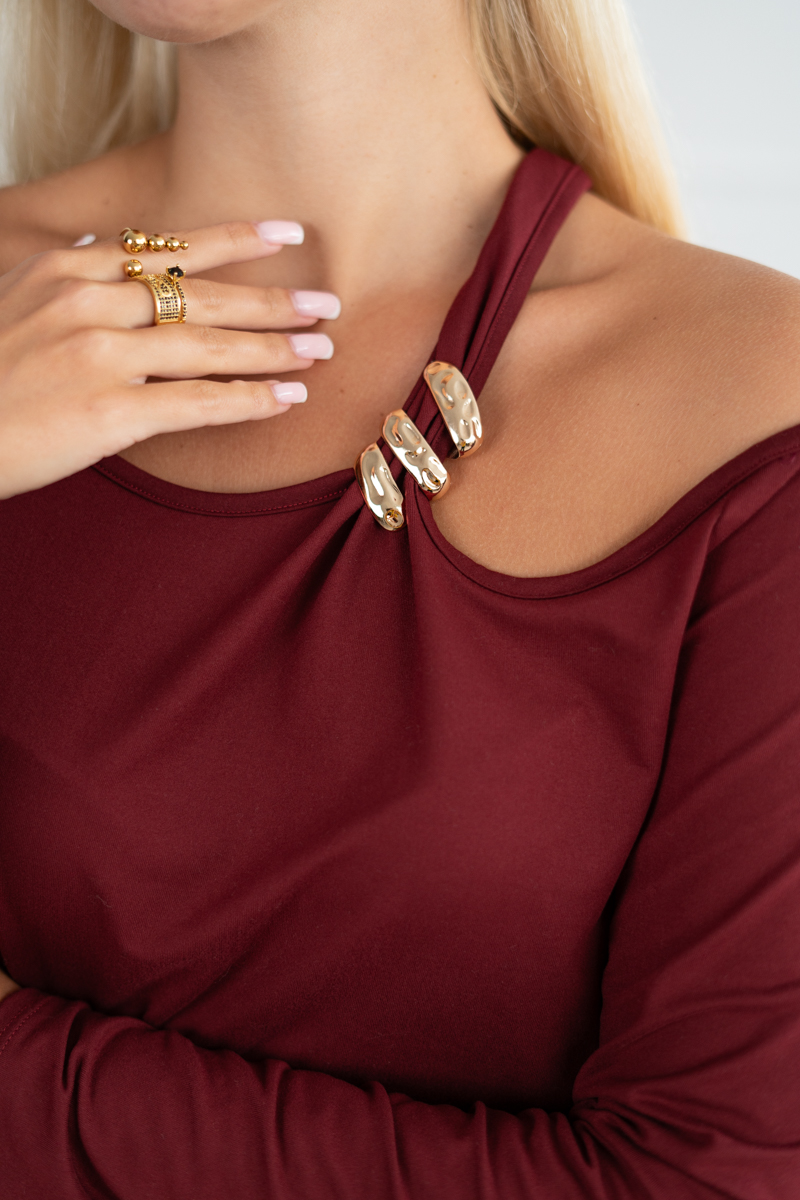 Bluzka asymetryczna damska Bordowy – Thavisse