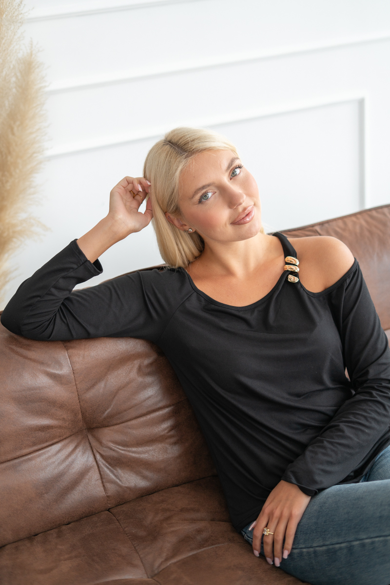 Bluzka asymetryczna damska Czarny – Thavisse to nowoczesna i elegancka propozycja, która wyróżnia się oryginalnym krojem. Wykonana z lekkiego, przewiewnego materiału, doskonale układa się na sylwetce i zapewnia komfort noszenia przez cały dzień. Asymetryczny fason dodaje całości unikalnego charakteru i sprawia, że bluzka przyciąga uwagę subtelną, a jednocześnie wyrazistą formą. Klasyczna czerń czyni ją uniwersalnym elementem garderoby, który świetnie komponuje się zarówno z eleganckimi spodniami i spódnicą, jak i z jeansami w bardziej casualowych zestawieniach. To propozycja idealna dla kobiet, które chcą dodać swoim stylizacjom nowoczesności i wyrafinowanego charakteru.