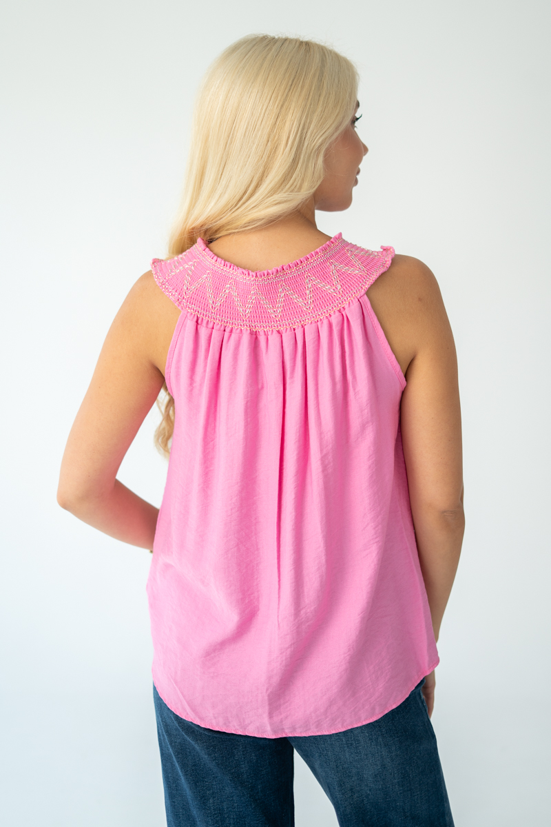 Bluzka boho w cukierkowym kolorze to dziewczęca i pełna uroku propozycja, która ożywi każdą stylizację. Wykonana z lekkiego, przewiewnego materiału, gwarantuje wygodę i swobodę ruchów. Luźny fason pięknie układa się na sylwetce, a elastyczna gumka przy dekolcie dodaje subtelnych marszczeń i podkreśla lekko romantyczny charakter. Wykończenie szyi falbanką wprowadza delikatny, kobiecy akcent, idealnie wpisujący się w styl boho. Pastelowy odcień sprawia, że bluzka świetnie komponuje się zarówno z jeansami, jak i jasnymi spódnicami, tworząc lekkie i świeże zestawienia na co dzień.