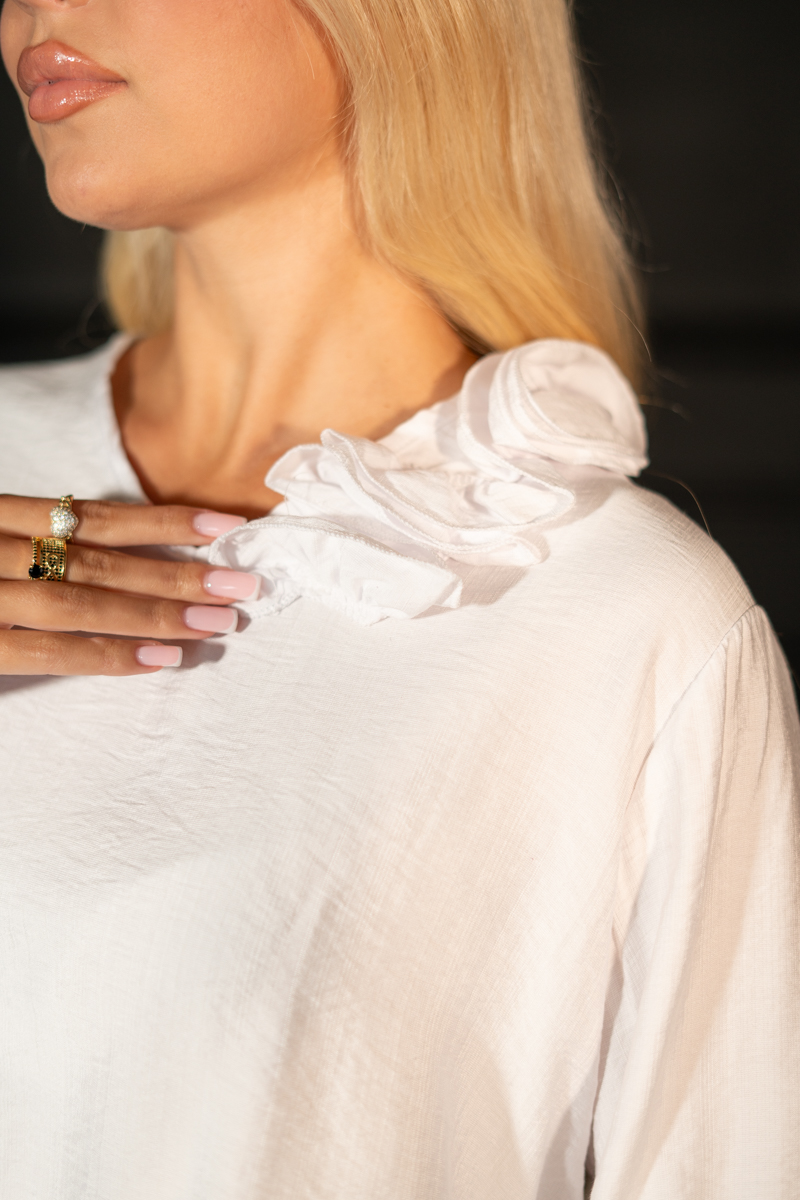 Bluzka z kwiatem przy dekolcie Biały – Florivellea