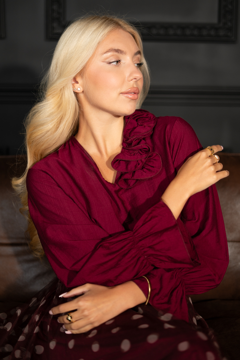 Bluzka z kwiatem przy dekolcie Bordowy – Florivellea