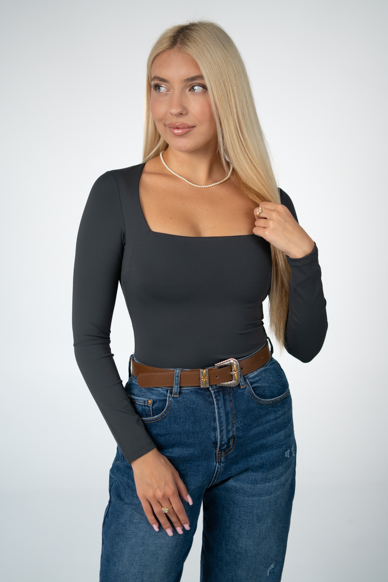 Body z kwadratowym dekoltem Grafitowy – Quadira