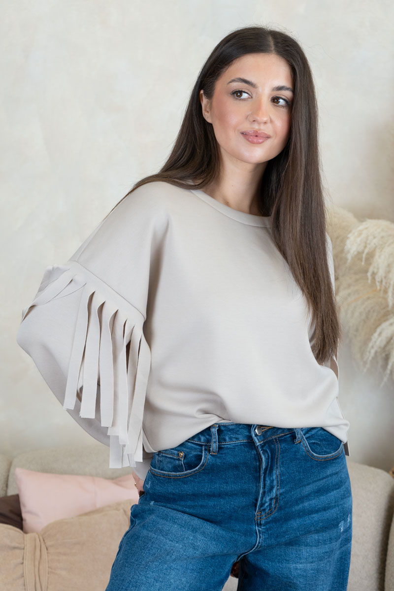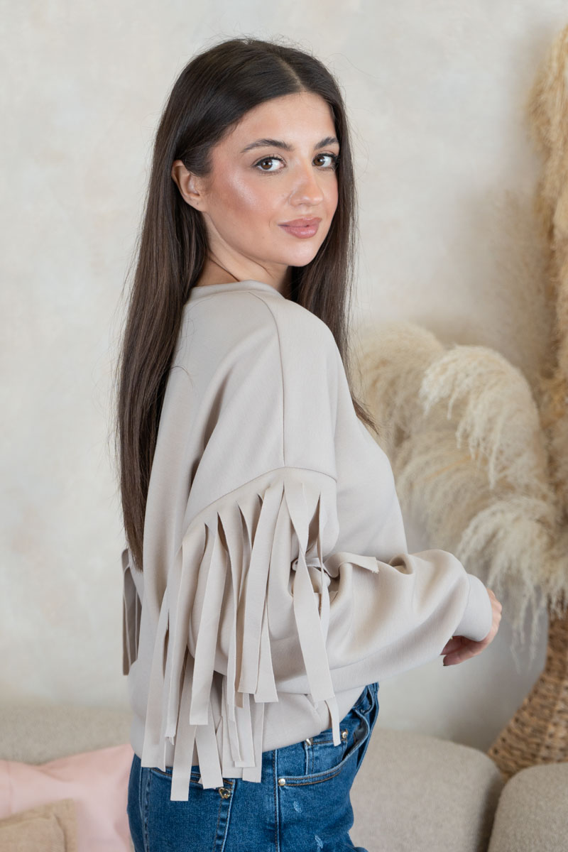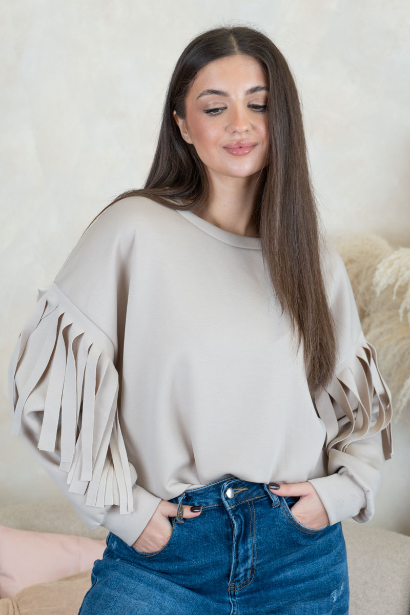 Bluza z frędzlami na rękawach Beżowy – Frendelle