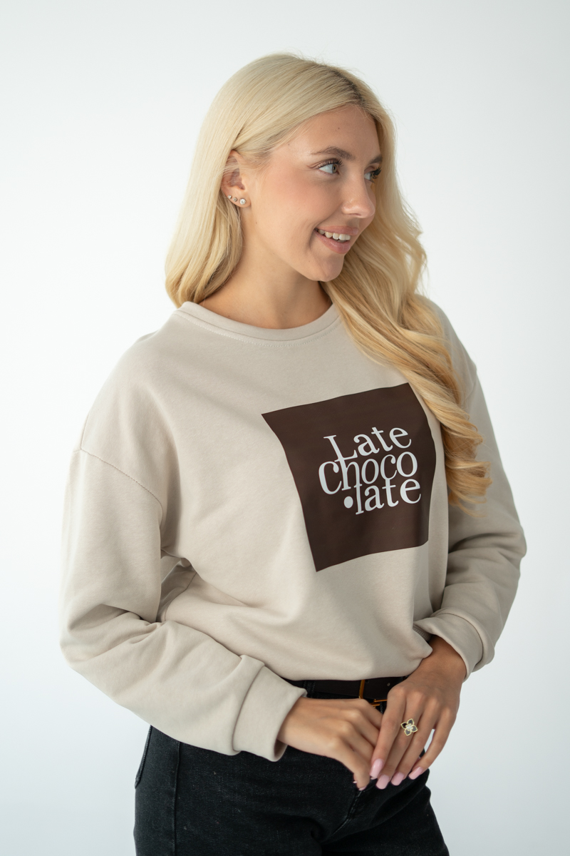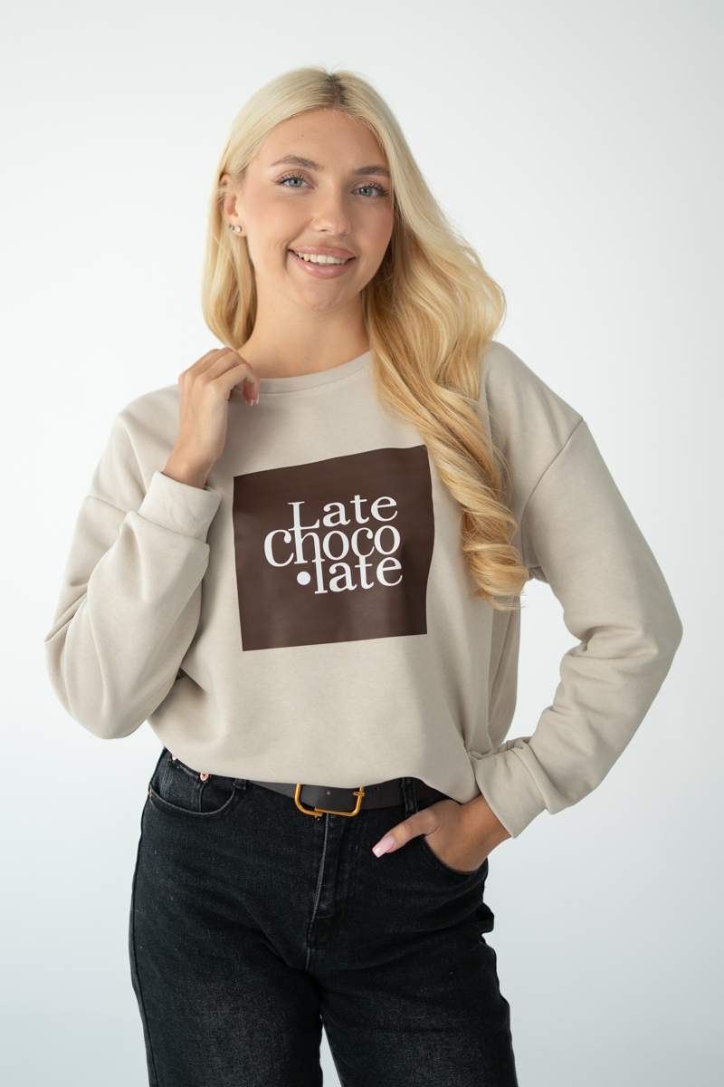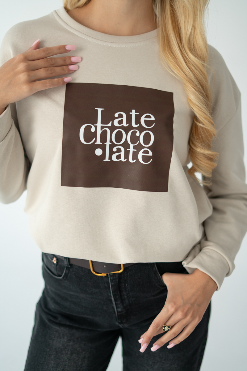 Bluza z nadrukiem Late Chocolate Beżowy – Serynne