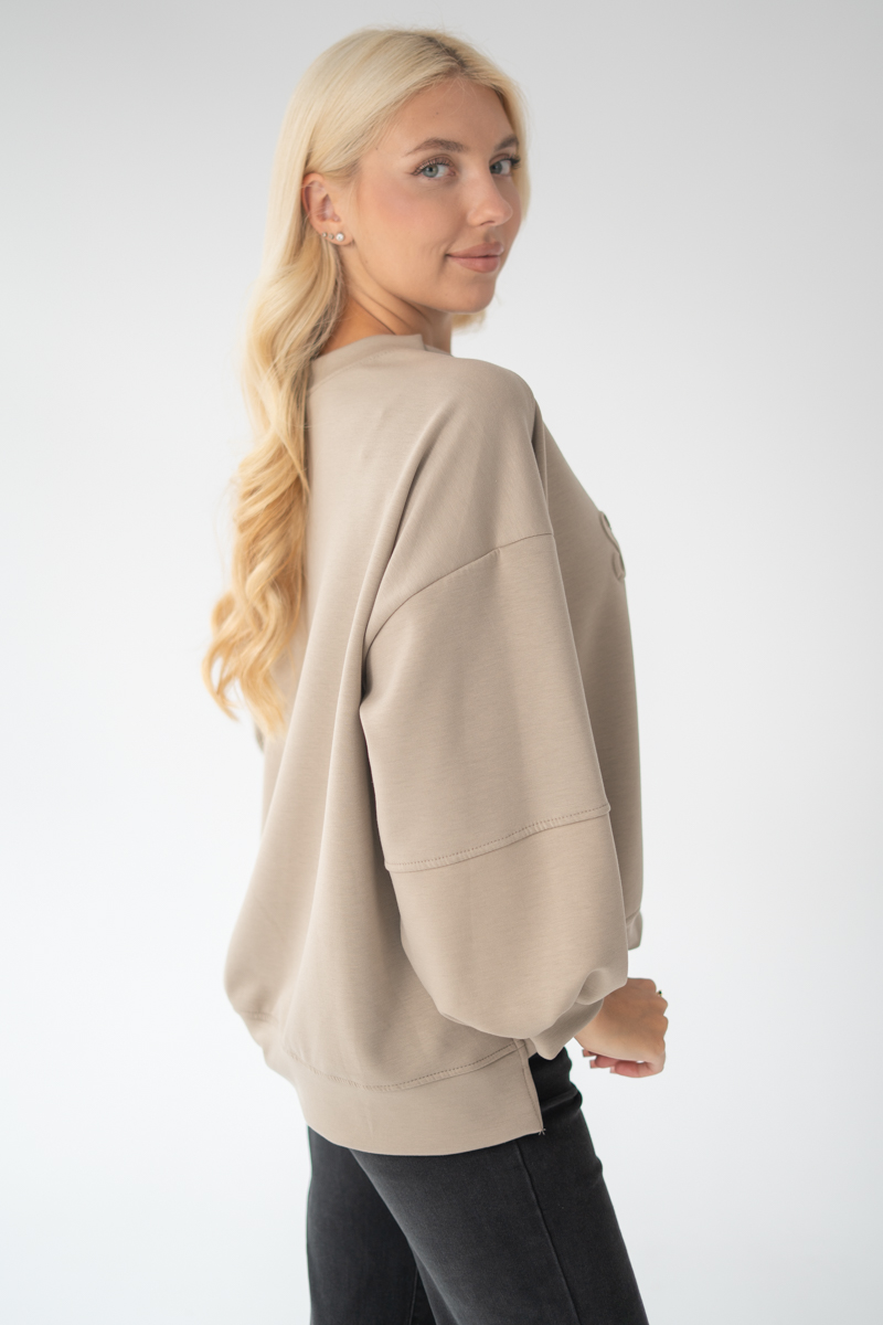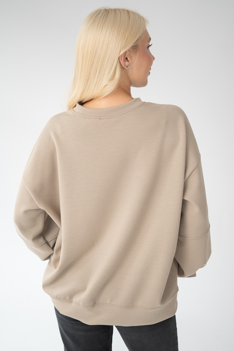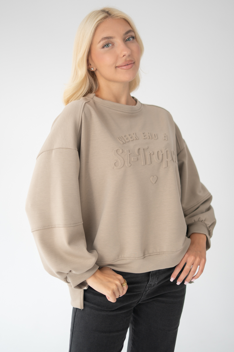 Bluza z napisem St. Tropez Fango – Melirra to połączenie wygody i miejskiego stylu. Utrzymana w odcieniu fango, prezentuje subtelny, tłoczony napis „St. Tropez” z delikatnym serduszkiem, który dodaje jej charakteru. Luźny krój z lekko obniżoną linią ramion zapewnia komfort i swobodę ruchów, a klasyczny okrągły dekolt sprawia, że model pasuje do wielu codziennych stylizacji. Idealna do jeansów, joggerów czy legginsów, sprawdzi się zarówno na co dzień, jak i podczas weekendowego relaksu. To propozycja dla kobiet, które lubią modny, ale jednocześnie ponadczasowy look.