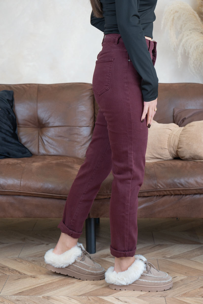 Jeansy mom fit z wysokim stanem Mivora to klasyka w nowoczesnym wydaniu. Wykonane z solidnego denimu, wyróżniają się luźniejszym krojem w biodrach i udach oraz zwężanymi nogawkami, co nadaje sylwetce lekkości i proporcji. Wysoki stan podkreśla talię i wysmukla linię brzucha, zapewniając przy tym wygodę noszenia. To uniwersalny model, który świetnie wygląda zarówno z elegancką koszulą, jak i prostym T-shirtem czy swetrem, tworząc bazę wielu codziennych stylizacji.