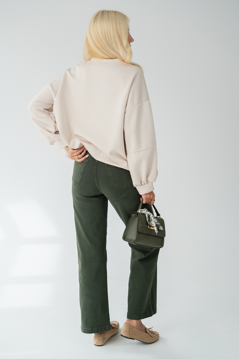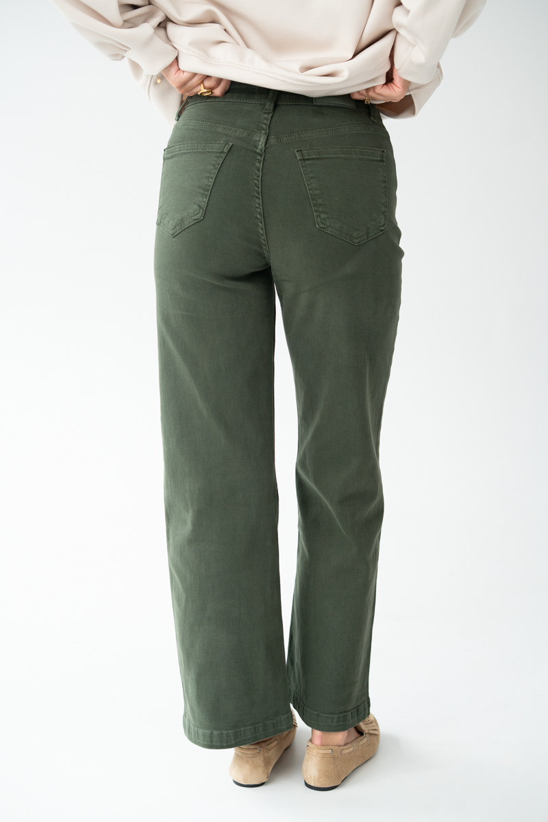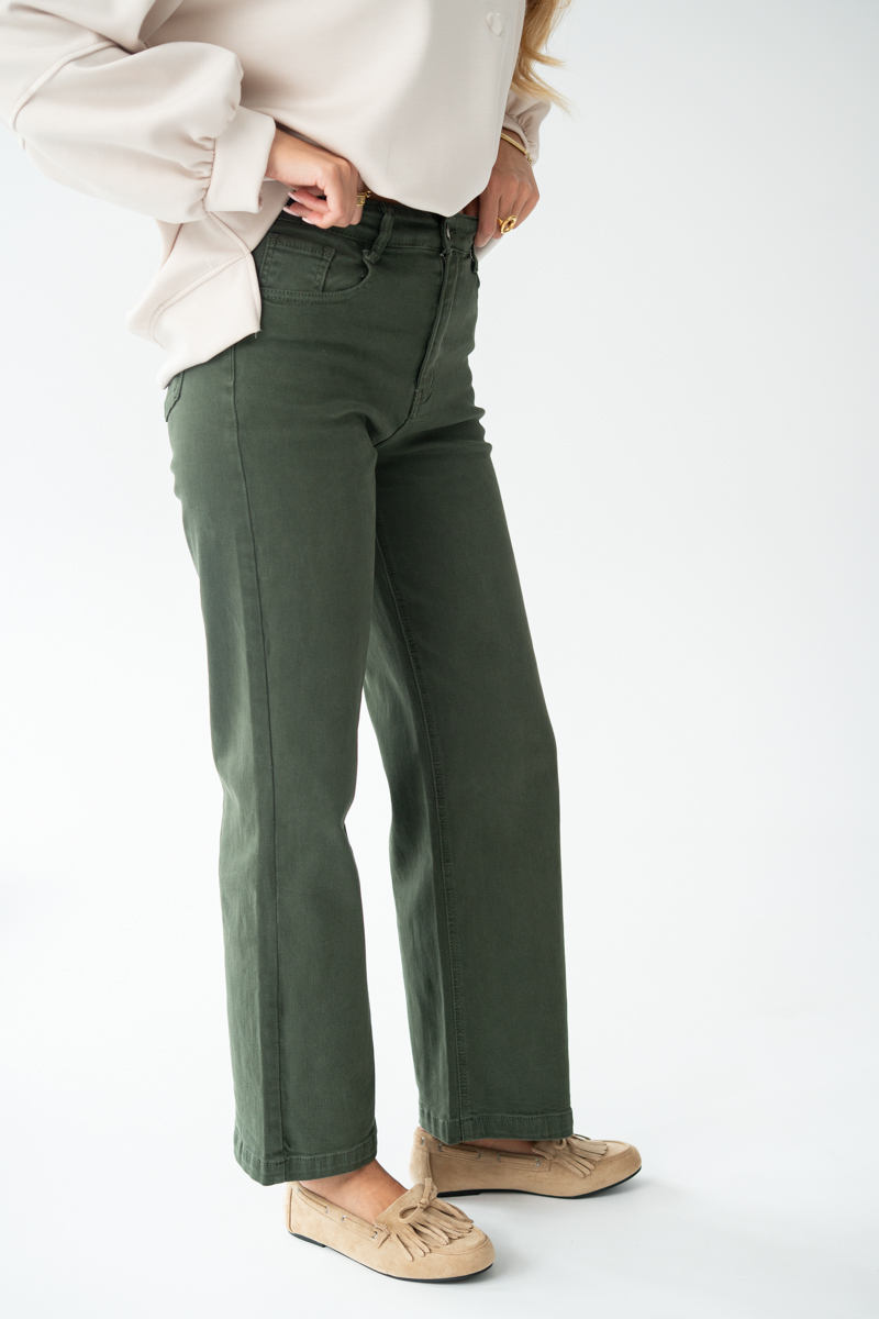Jeansy wide leg z prostą nogawką Oliwkowy – Chocavelle