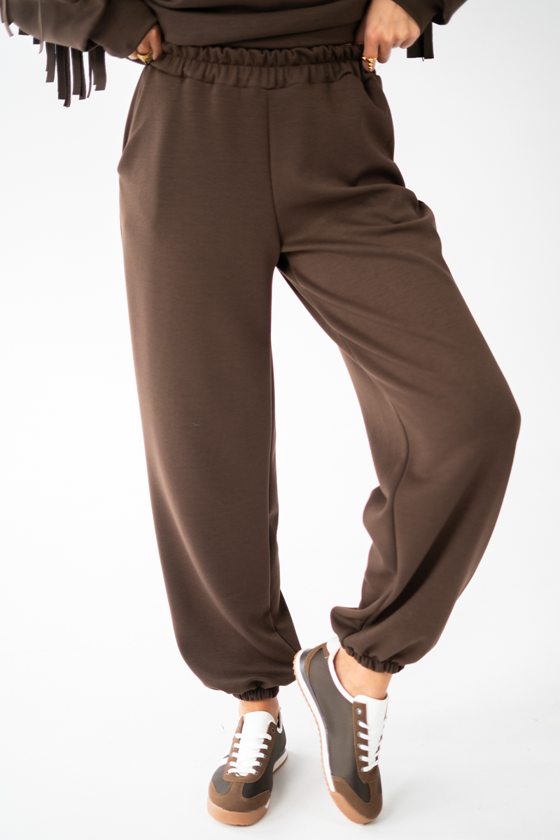 Bluza i spodnie z frędzlami Czekoladowy – Frendyssa