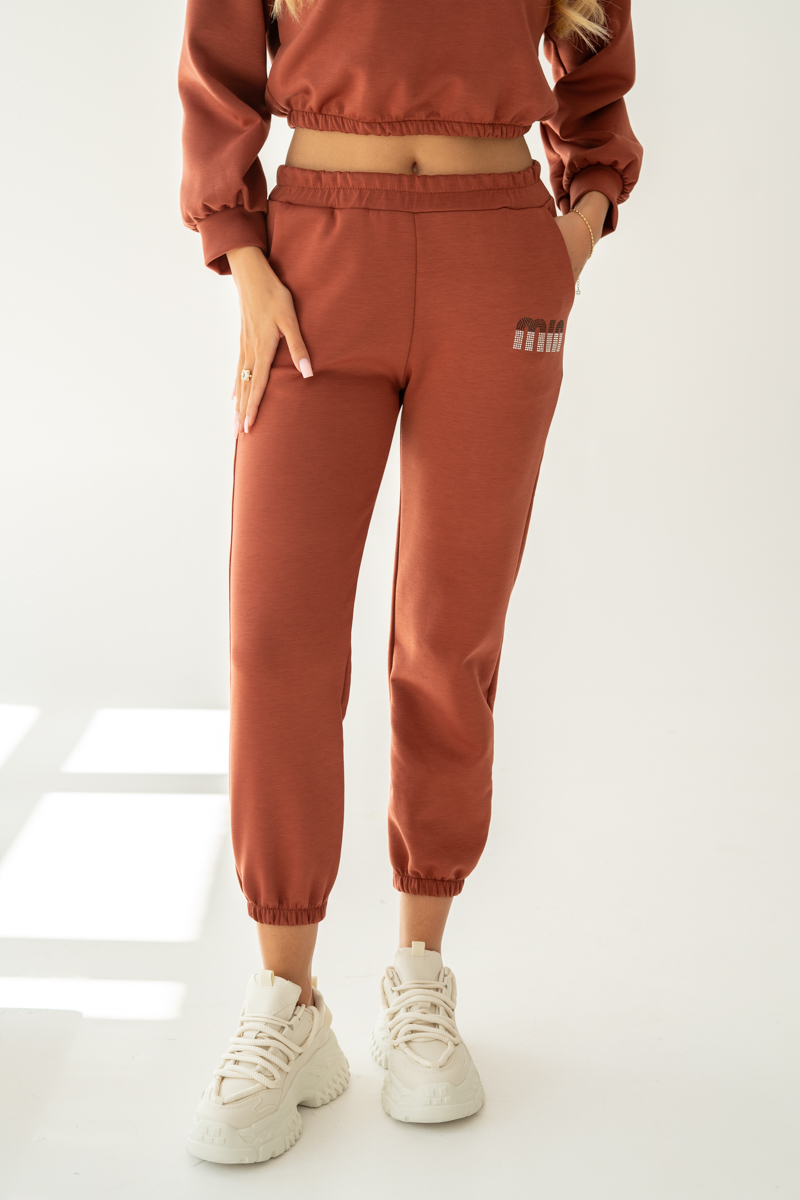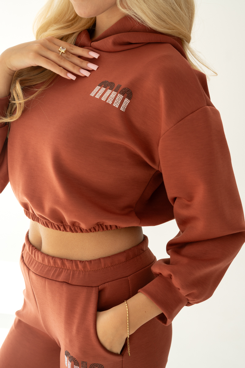 Komplet damski mini hoodie i jogger Ceglasty – Minvessa