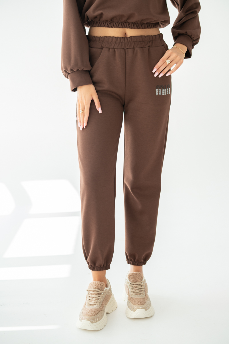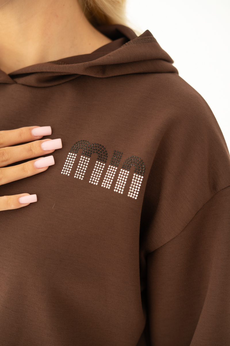 Komplet damski mini hoodie i jogger Czekoladowy – Minvessa