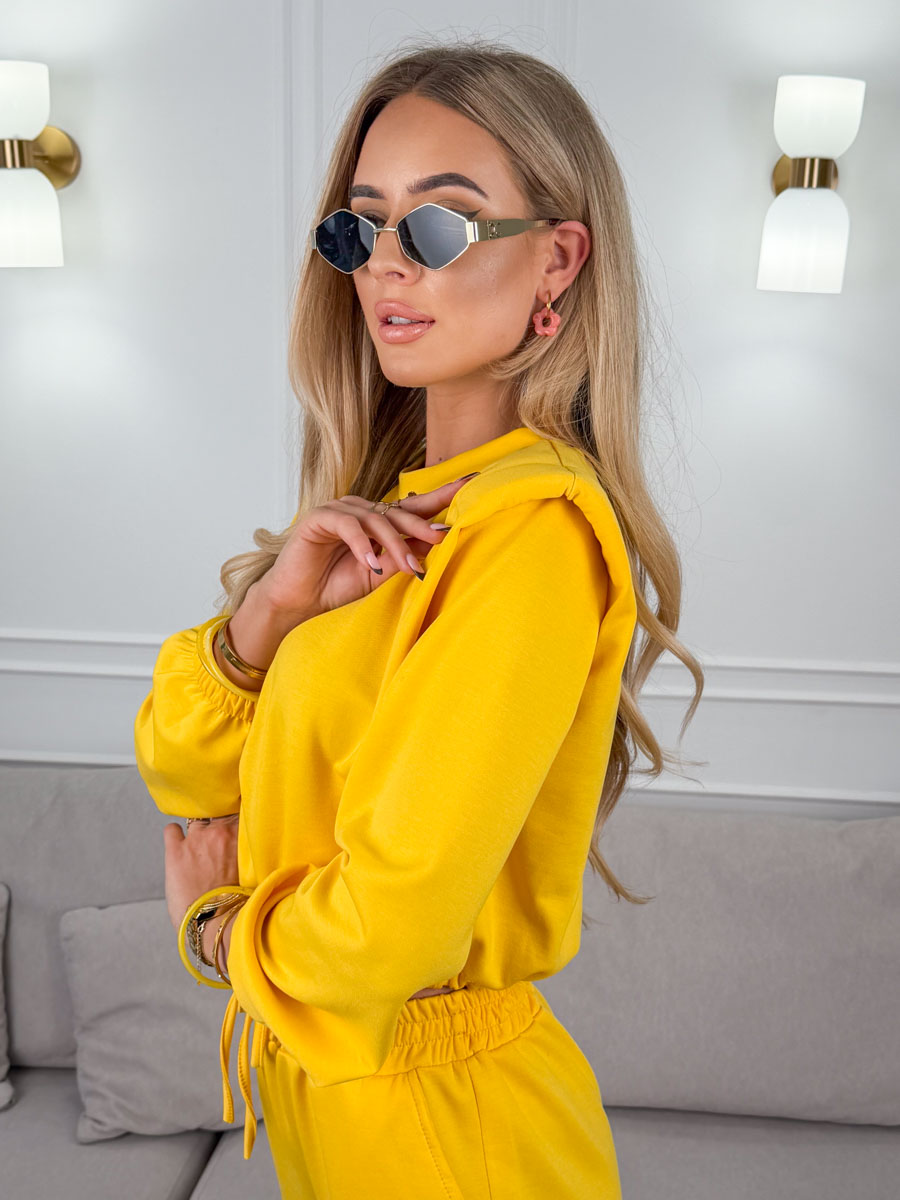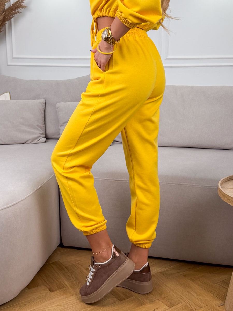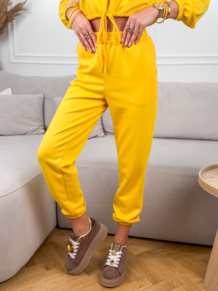 Komplet dresowy ze ściągaczami damski wiązany Żółty – Lazy Tie