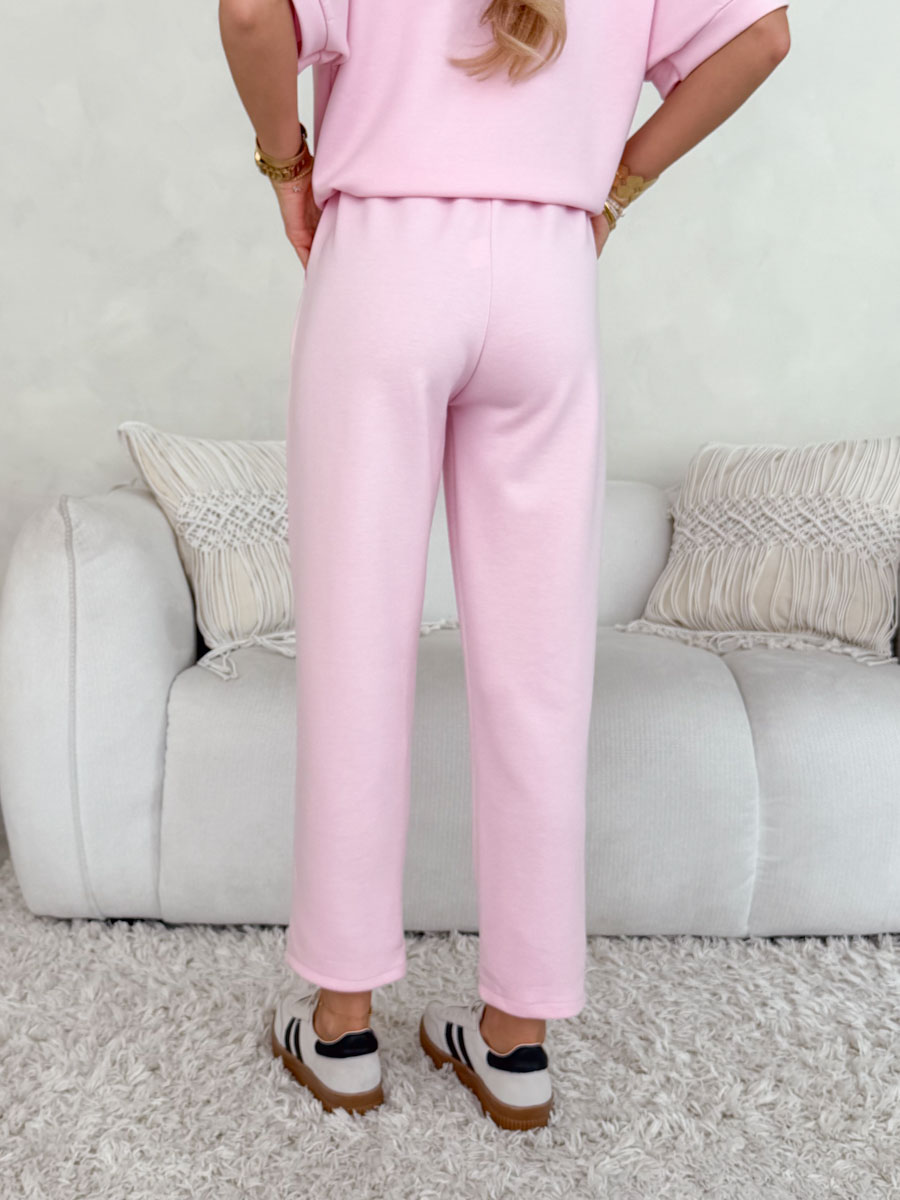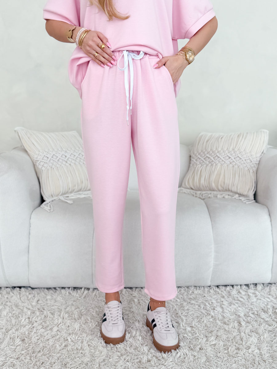 Komplet Viscoria Set w pudrowym odcieniu to wyjątkowo kobieca i stylowa propozycja na co dzień. Wykonany z lekkiej, oddychającej wiskozy, zapewnia wysoki komfort noszenia oraz swobodę ruchów. Luźna bluzka o prostym kroju została ozdobiona subtelną broszką, która dodaje eleganckiego akcentu i wyróżnia całość. Spodnie z podwiniętymi nogawkami oraz elastyczną talią gwarantują idealne dopasowanie do sylwetki. Delikatny, pastelowy kolor wprowadza lekkość i świeżość do stylizacji, czyniąc komplet doskonałym wyborem zarówno na co dzień, jak i do bardziej dopracowanych zestawów.