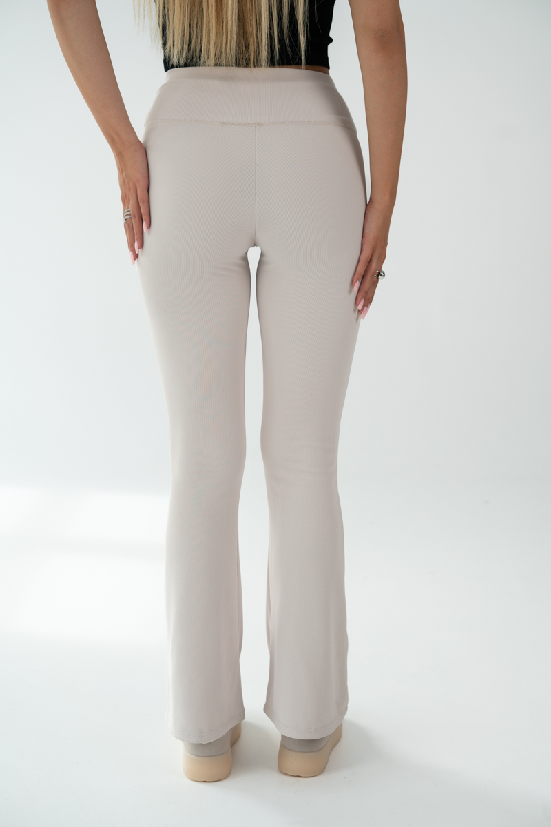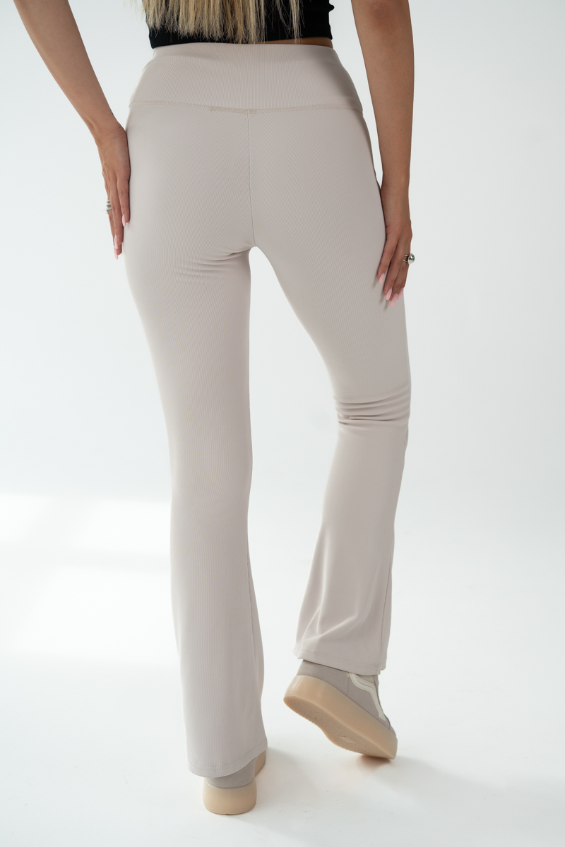 Legginsy prążkowane dzwony Beżowy – Flarynne