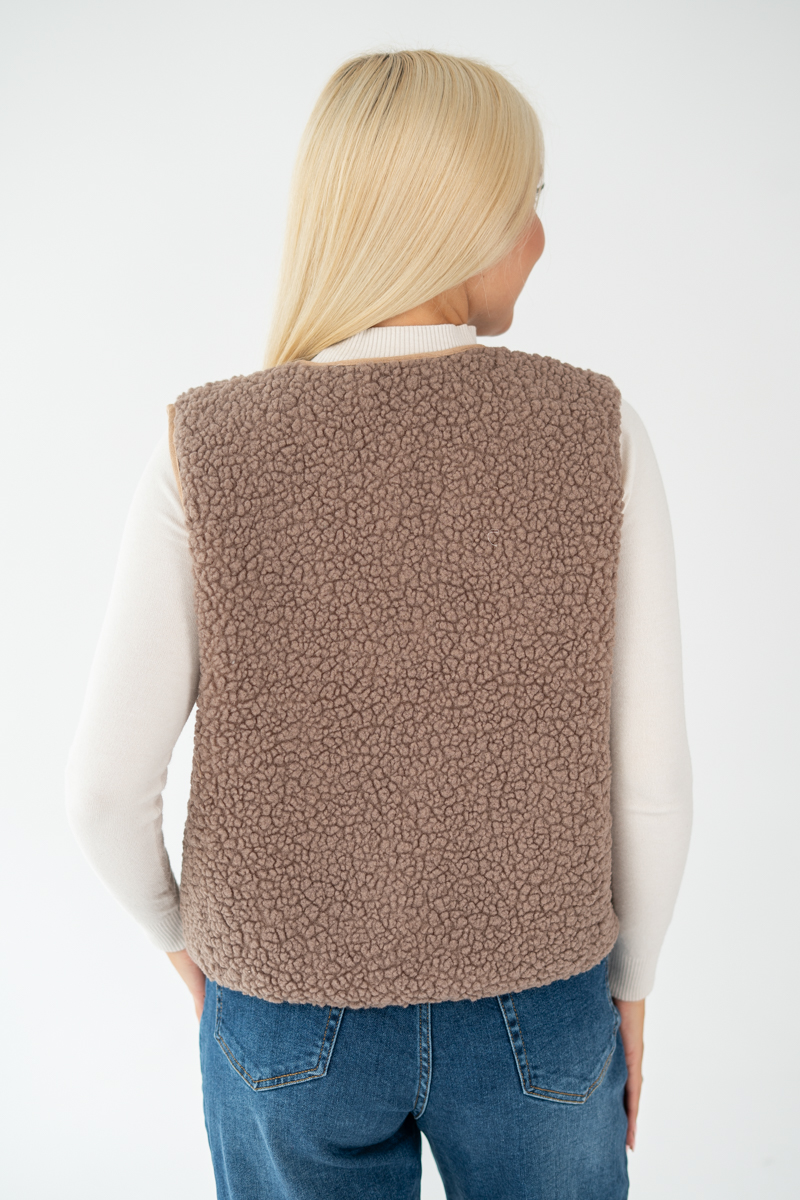 Kamizelka baranek wiązana Czekoladowy – Celirra