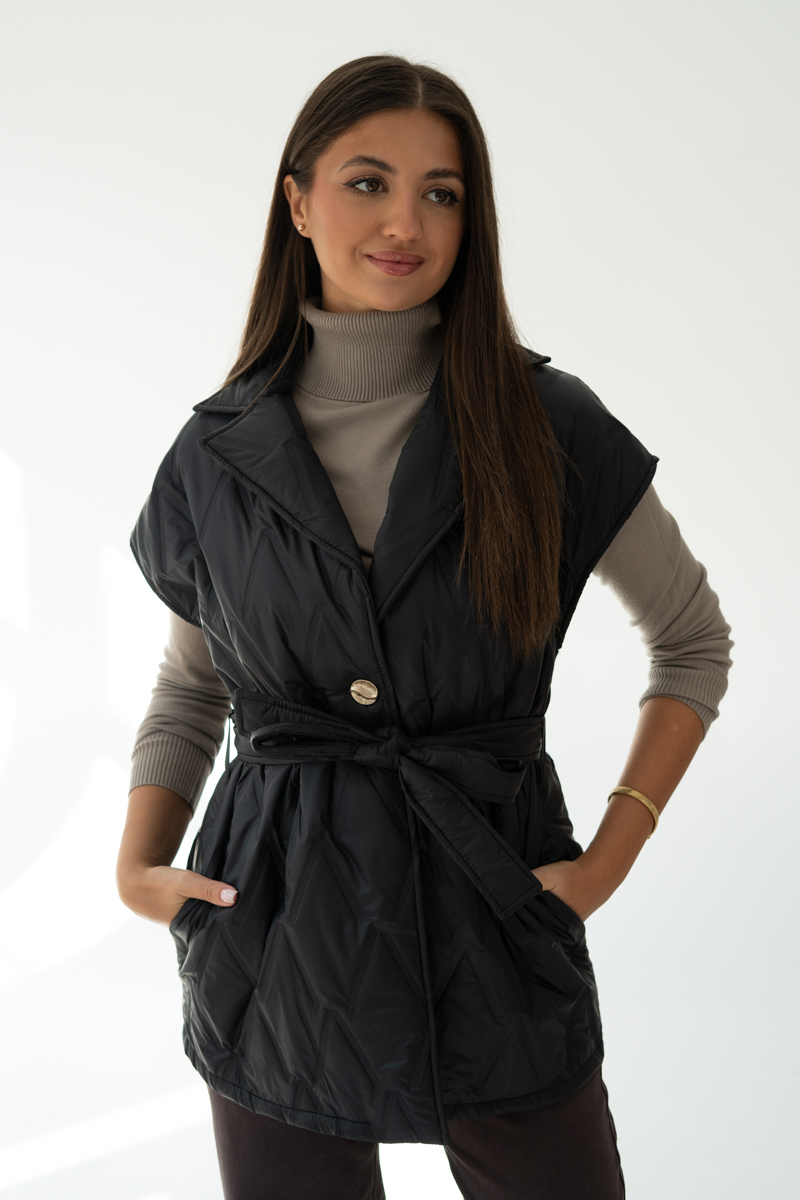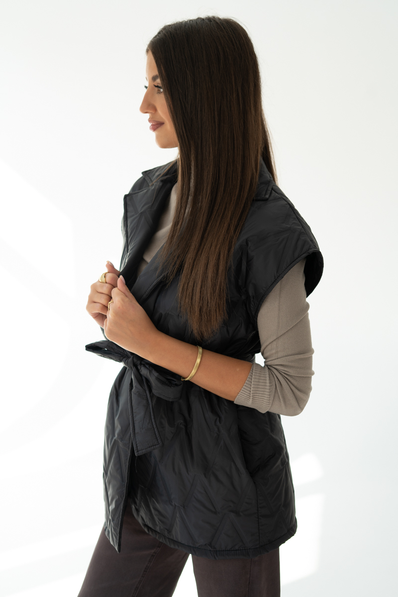 Pikowana kamizelka z paskiem w talii Czarny – Vestoria
