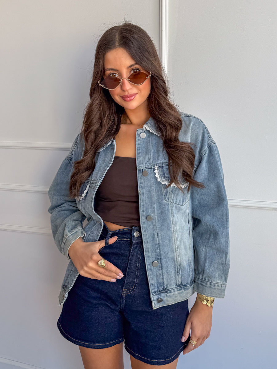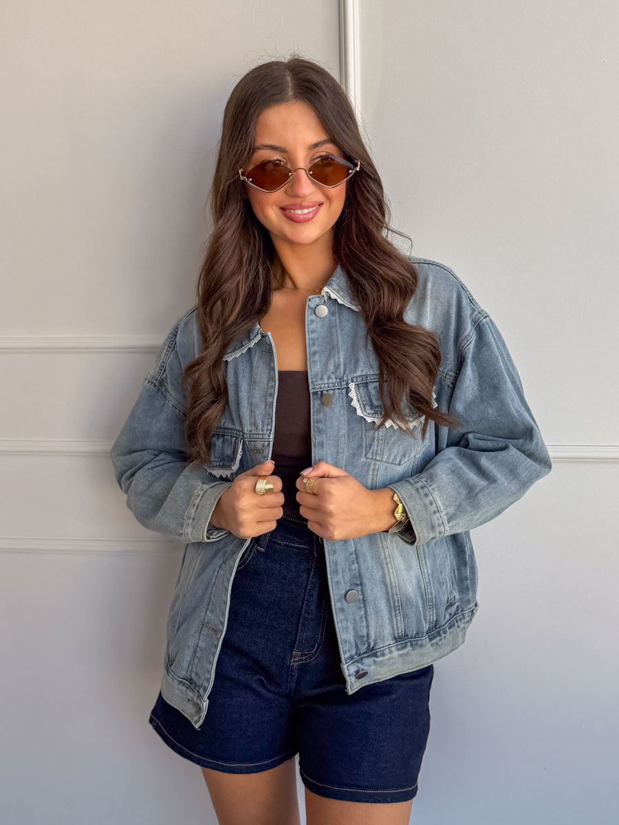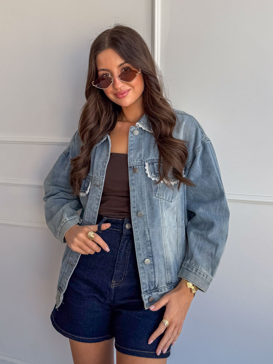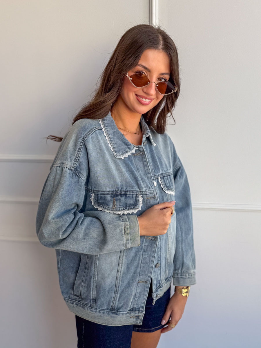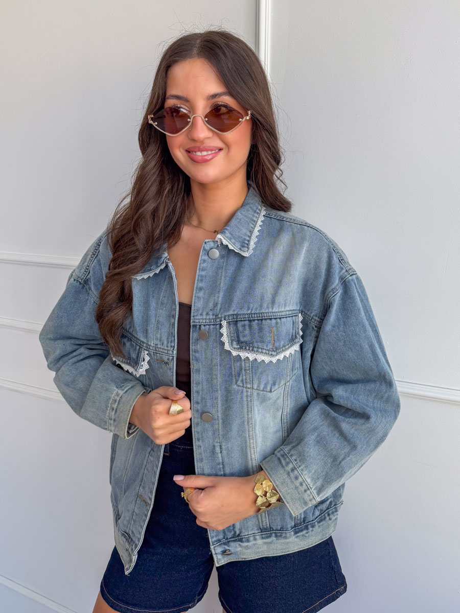 Katana jeansowa oversize z koronkowym wykończeniem – Lace Rebel