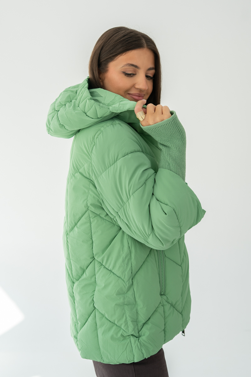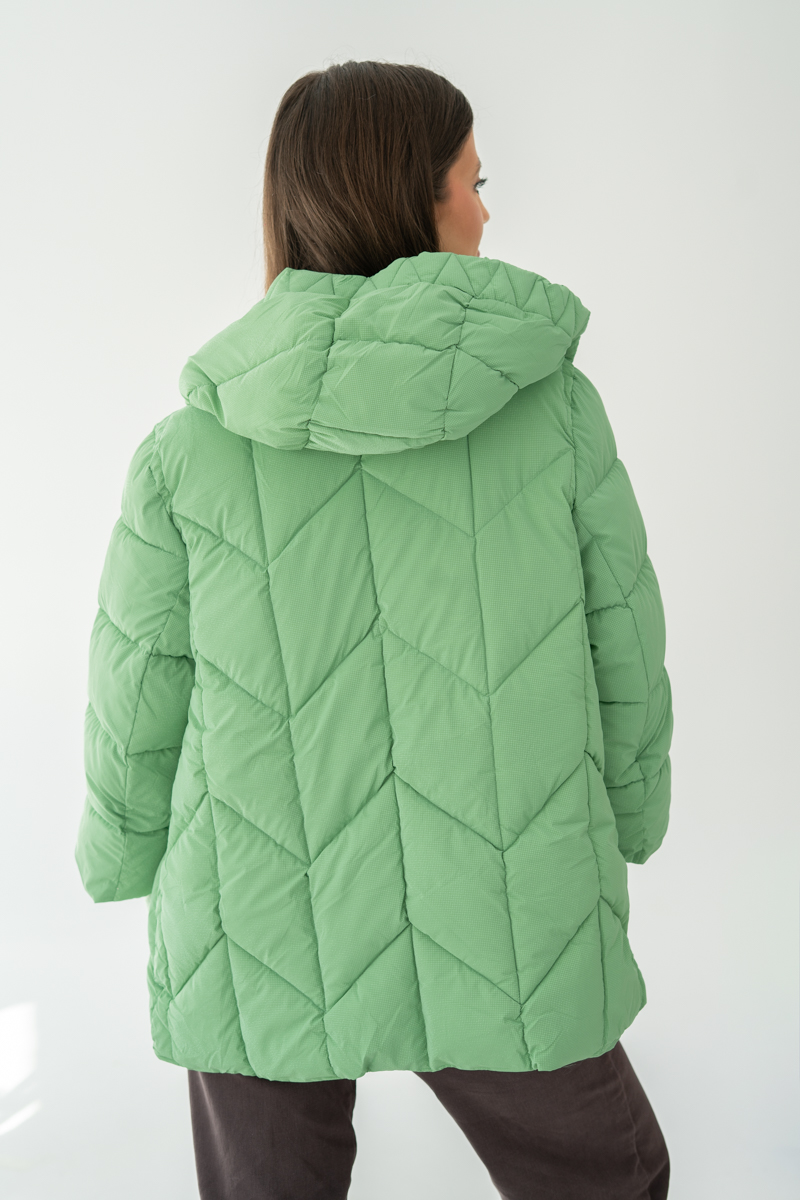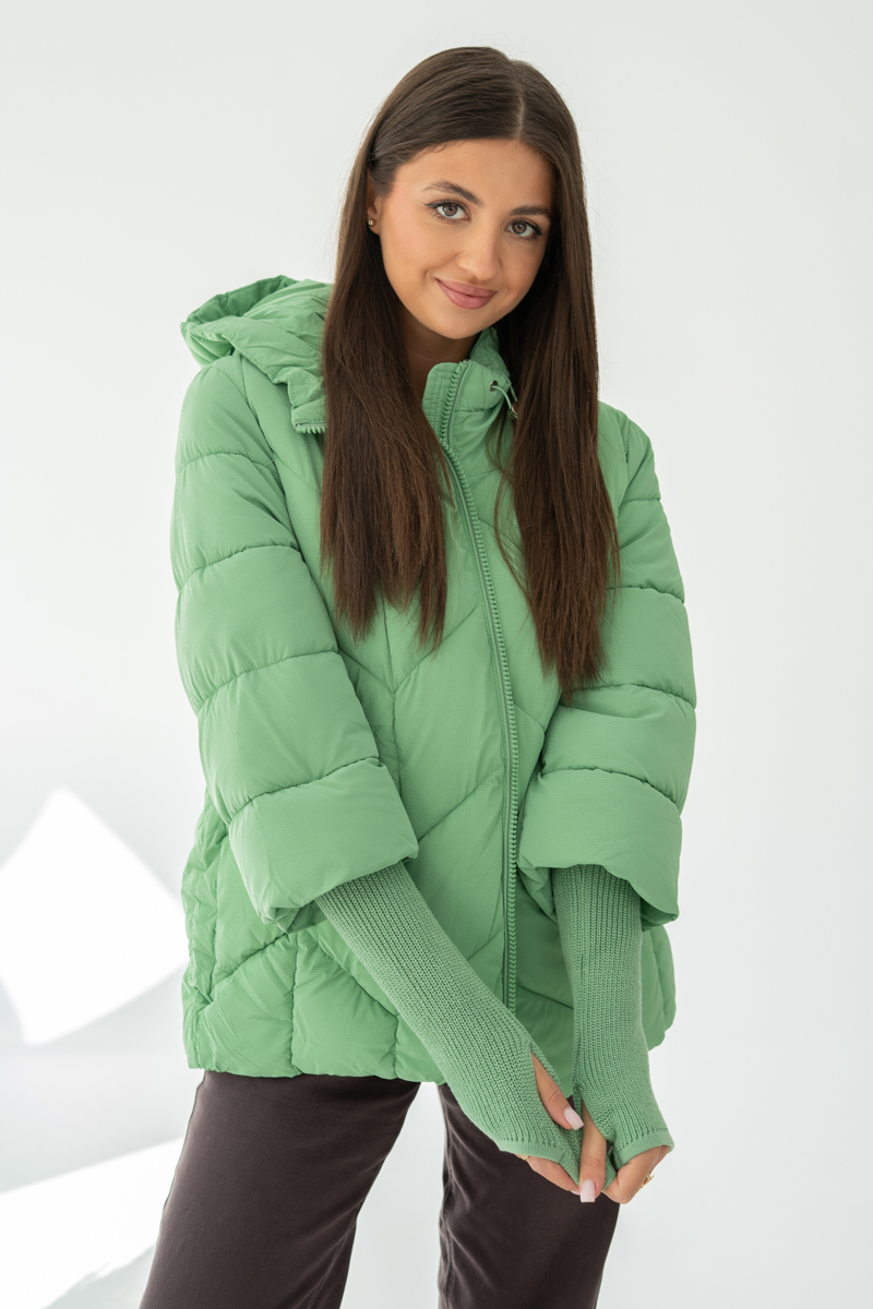 Krótka kurtka pikowana z kapturem Zielony – Shynoria