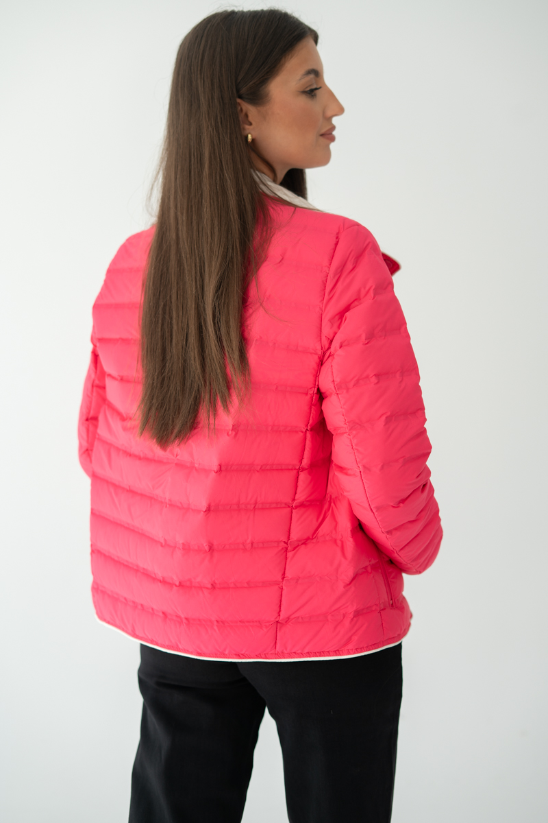 Krótka kurtka puchowa zapinana na zamek Różowy – Norivellea