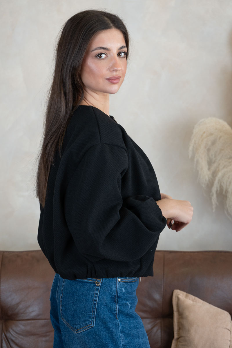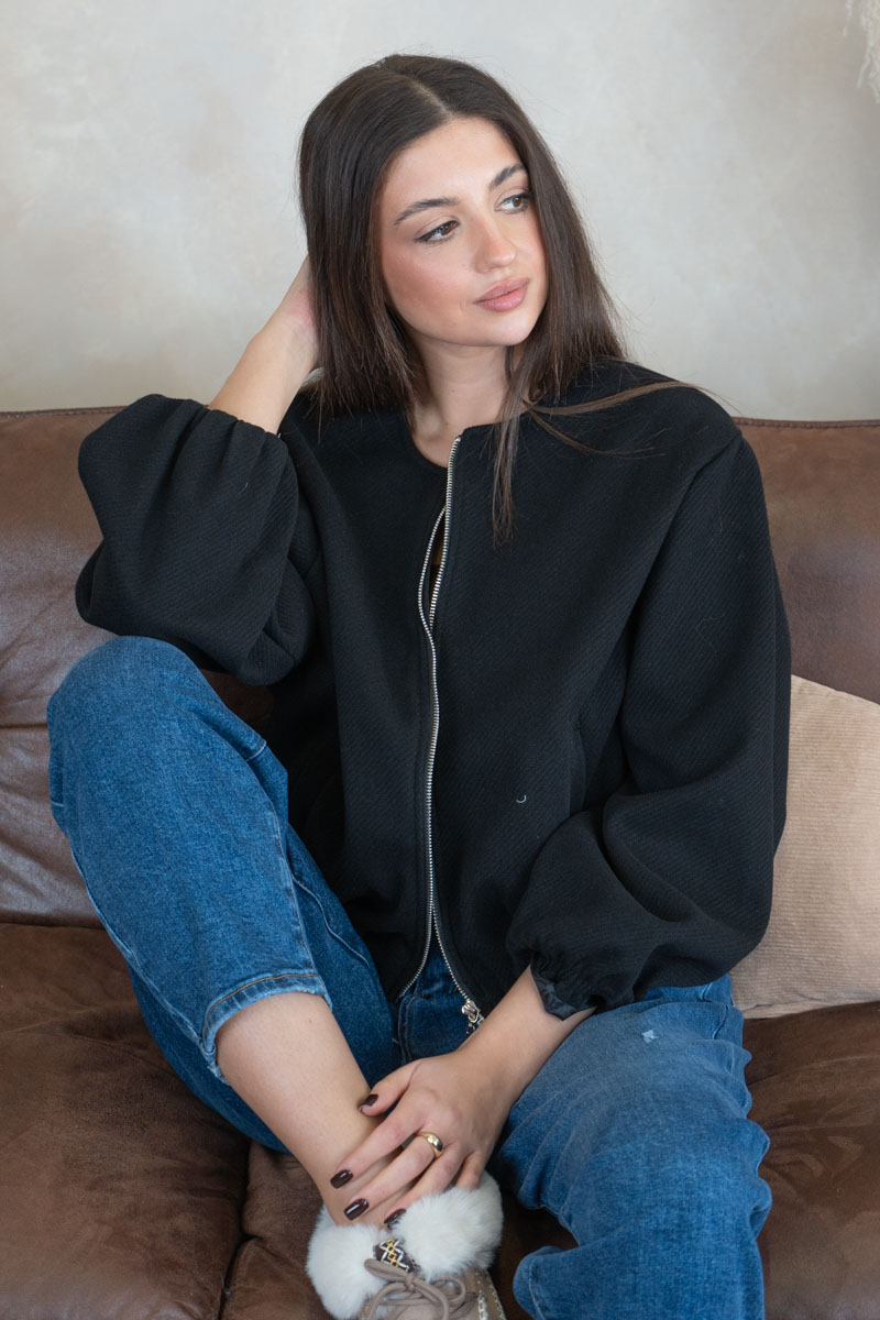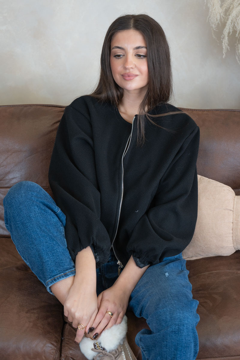 Kurtka bomberka na zamek Czarny – Bomirra to ponadczasowy model, który świetnie sprawdzi się w casualowych stylizacjach. Wykonana z lekkiego, przyjemnego w dotyku materiału, posiada prosty krój z elastycznym wykończeniem w pasie i przy rękawach, co zapewnia komfort noszenia i dobre dopasowanie. Zamek błyskawiczny dodaje jej funkcjonalności, a klasyczny czarny kolor sprawia, że łatwo połączyć ją z różnymi elementami garderoby. Uniwersalna i stylowa, będzie idealnym wyborem zarówno na co dzień, jak i na luźniejsze wyjścia.