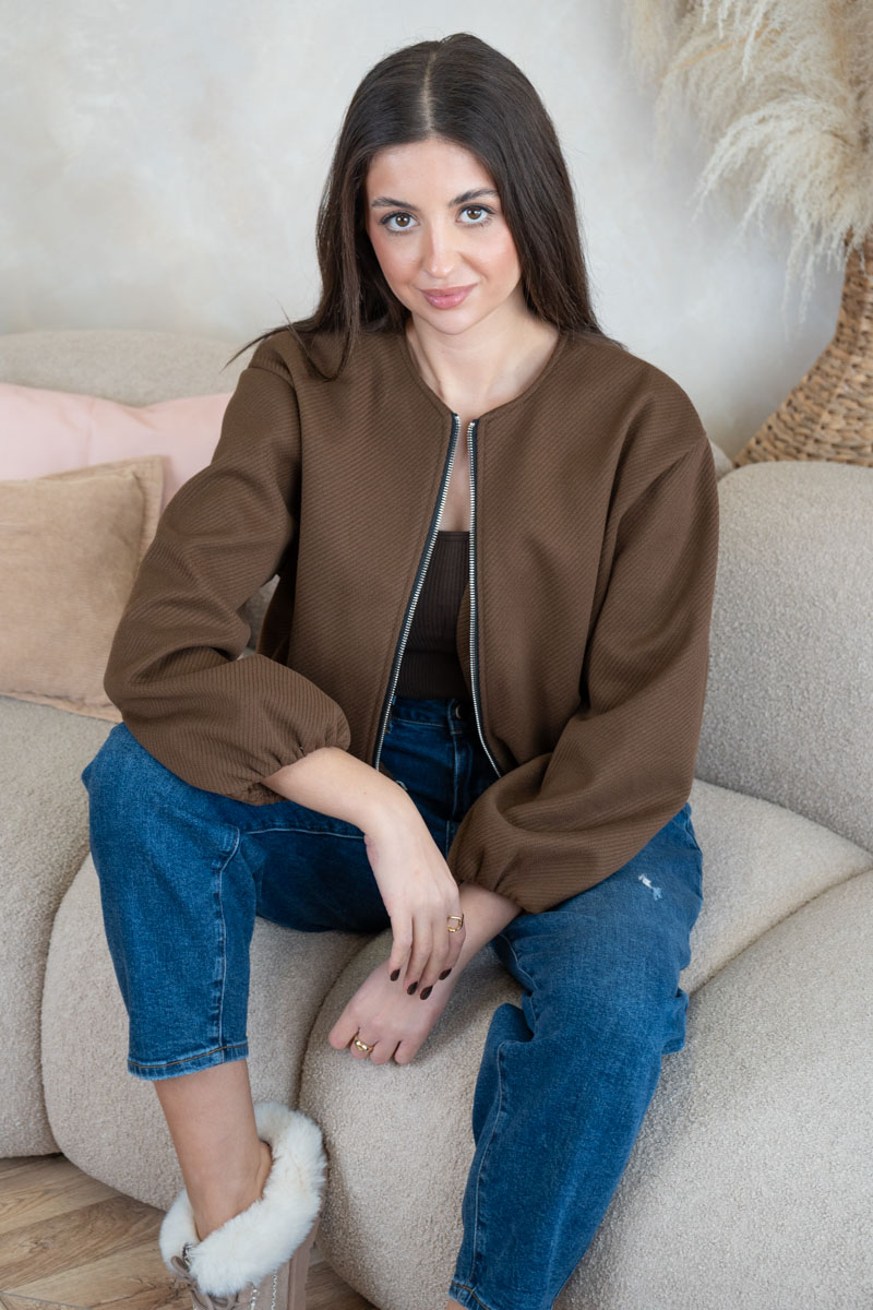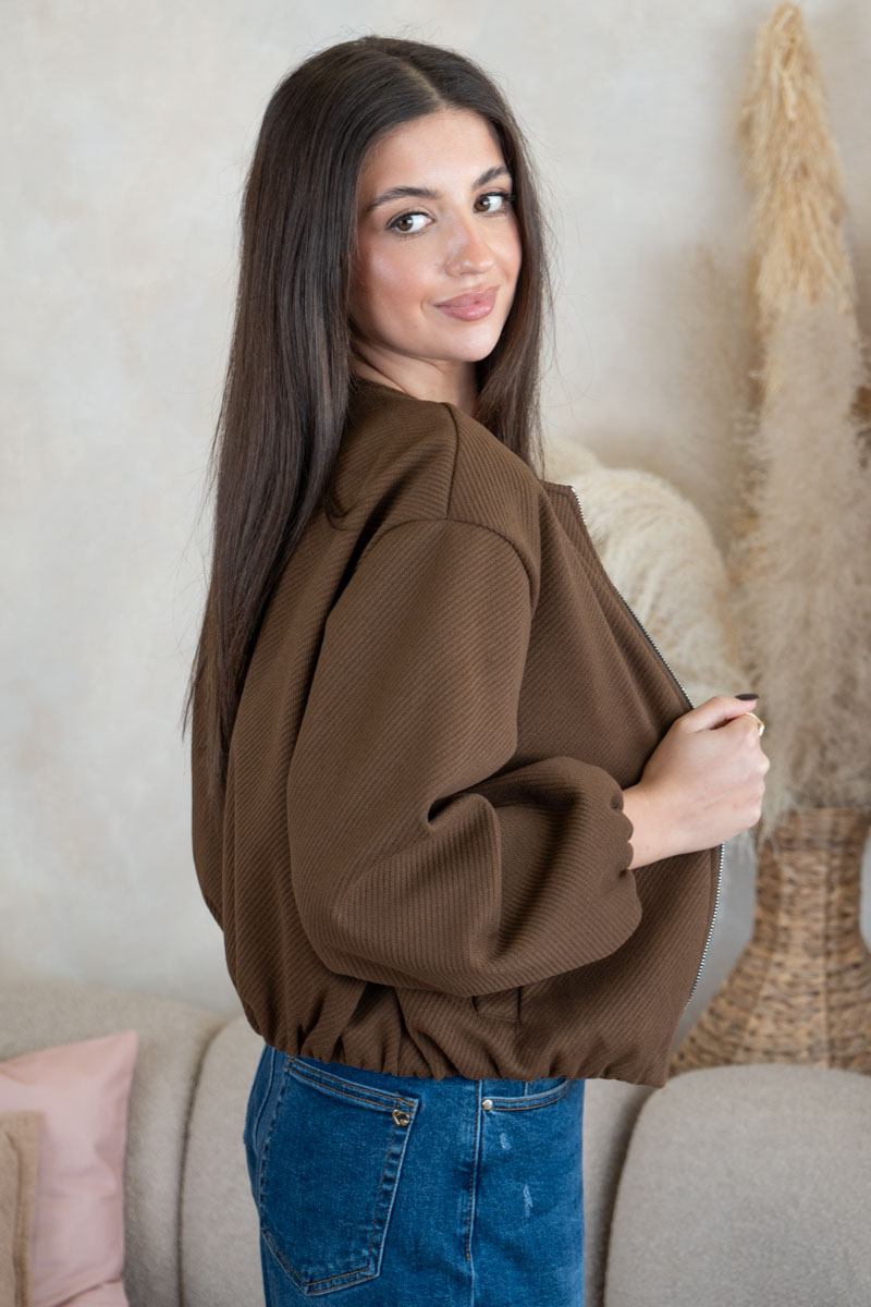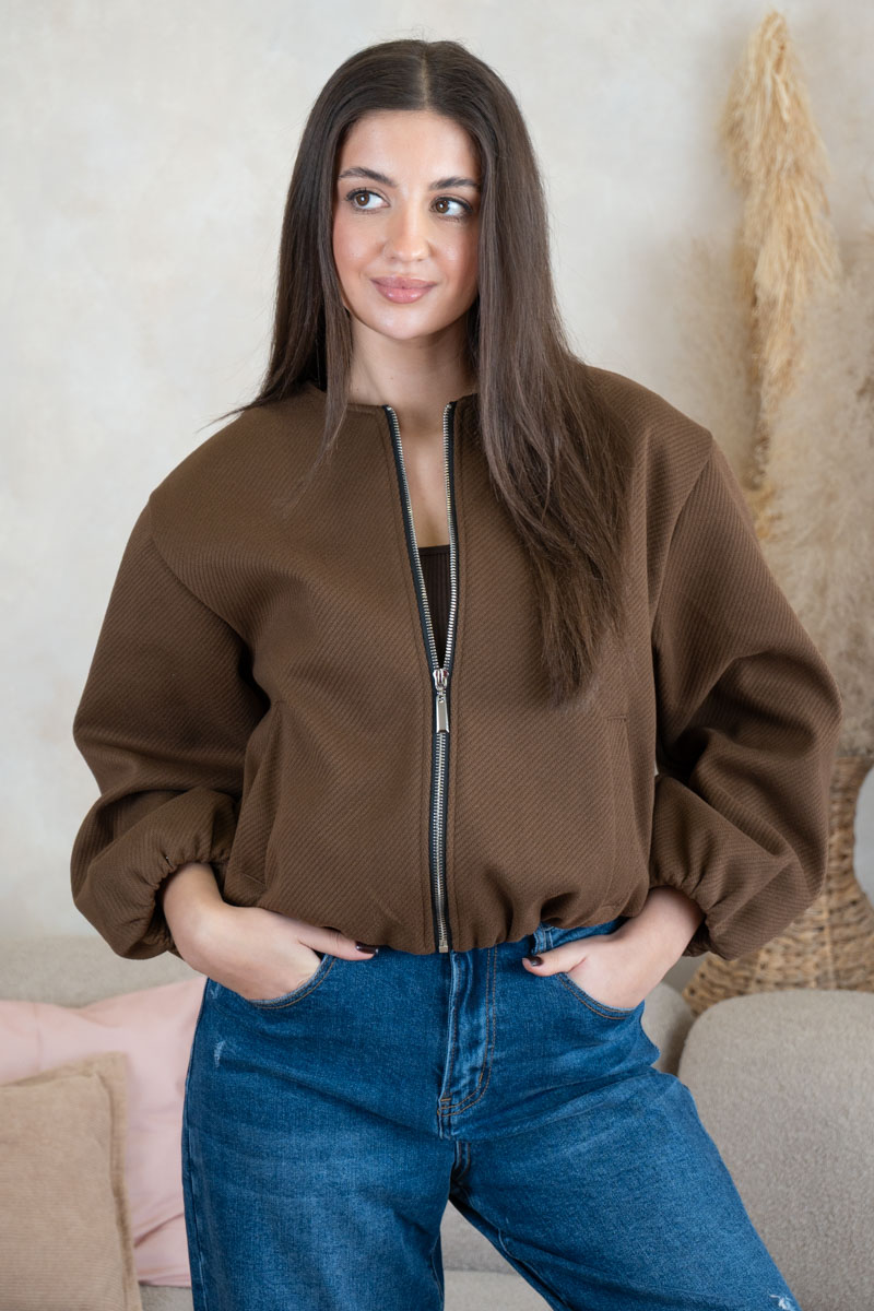 Kurtka bomberka na zamek Czekoladowy – Bomirra to stylowy model, który łączy wygodę z nowoczesnym designem. Uszyta z lekkiego materiału, posiada prosty krój z elastycznym wykończeniem w pasie i przy rękawach, co zapewnia komfort oraz dobre dopasowanie. Zamek błyskawiczny podkreśla jej praktyczny charakter, a czekoladowy odcień dodaje całości elegancji i wyjątkowego wyglądu. To uniwersalna kurtka, idealna zarówno do codziennych, jak i casualowych stylizacji, świetnie komponująca się z wieloma kolorami.