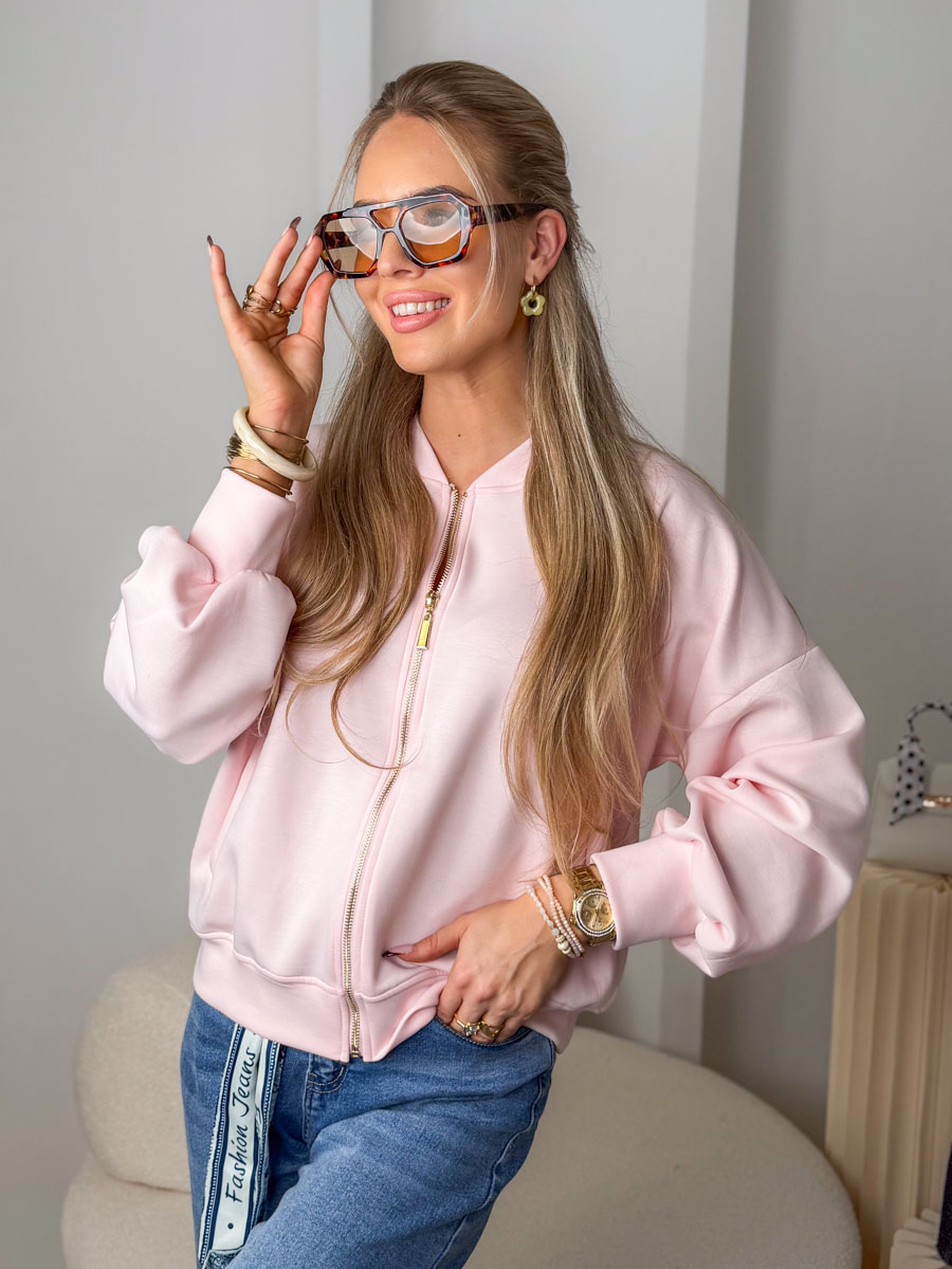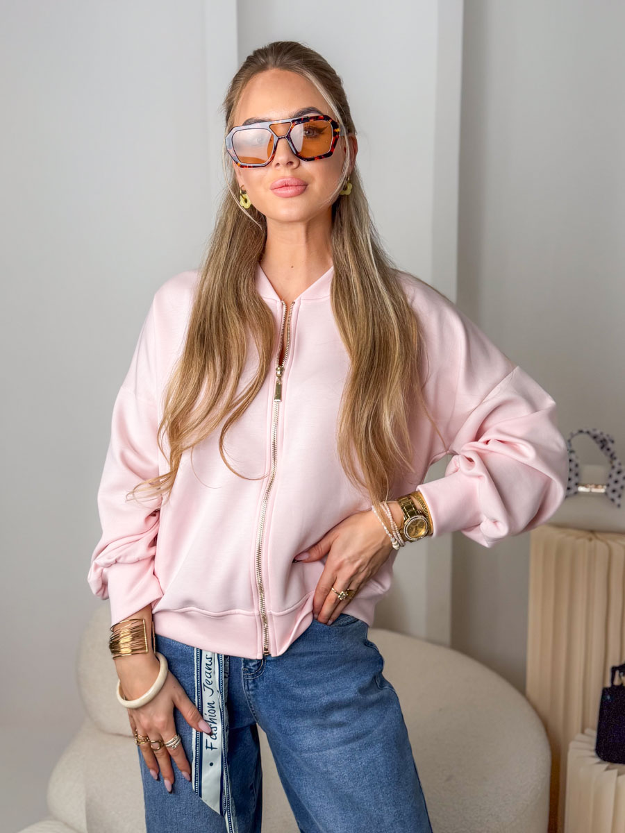 Kurtka damska bomberka na zamek Pudrowy – Bombera Chic